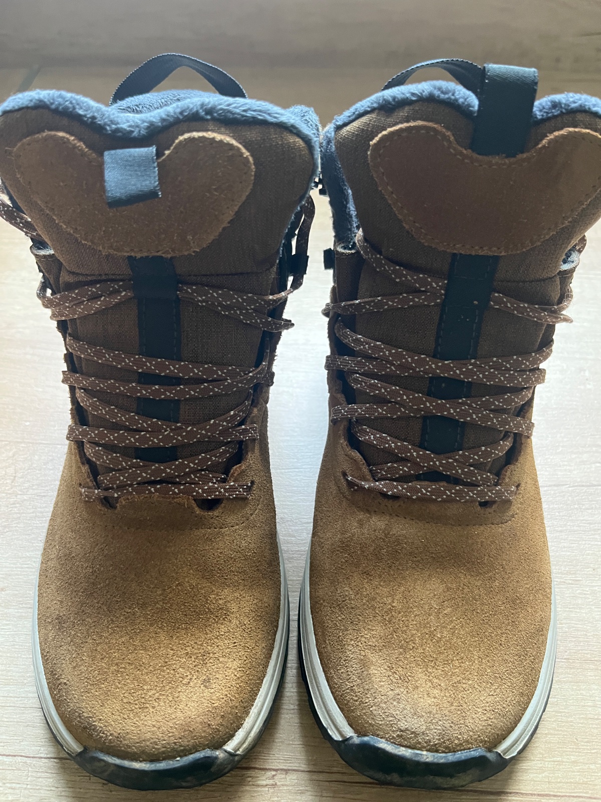 Nosené jednu zimu, na rýchloupínanie, nepremokavé, syn mal vnútri ortopedickú vložku, čiže tá čo je k nim originál nebola ani použitá, dĺžka vnútornej vložky 24,5 cm. Jediná chybička,že sa odtrhla ...