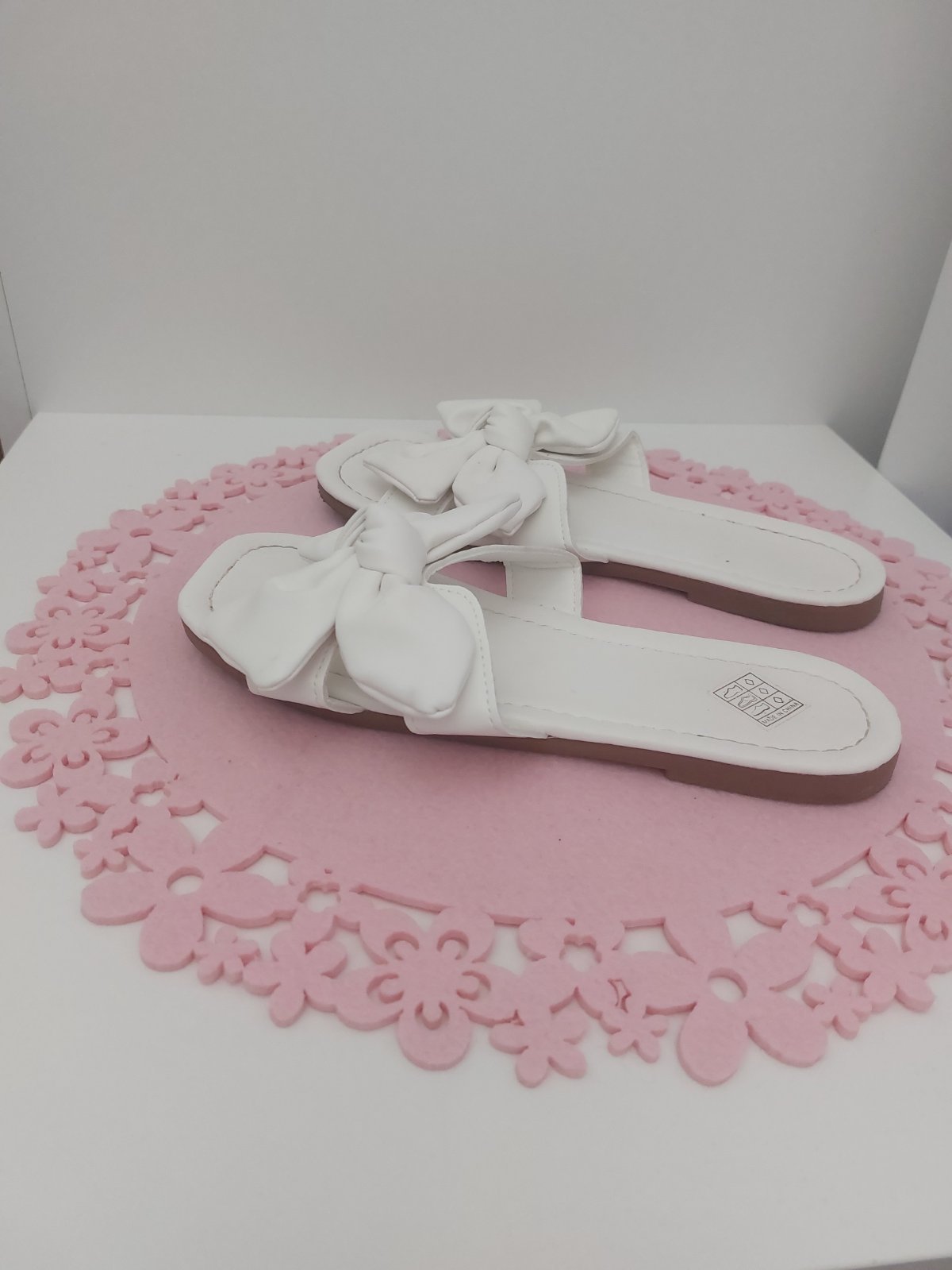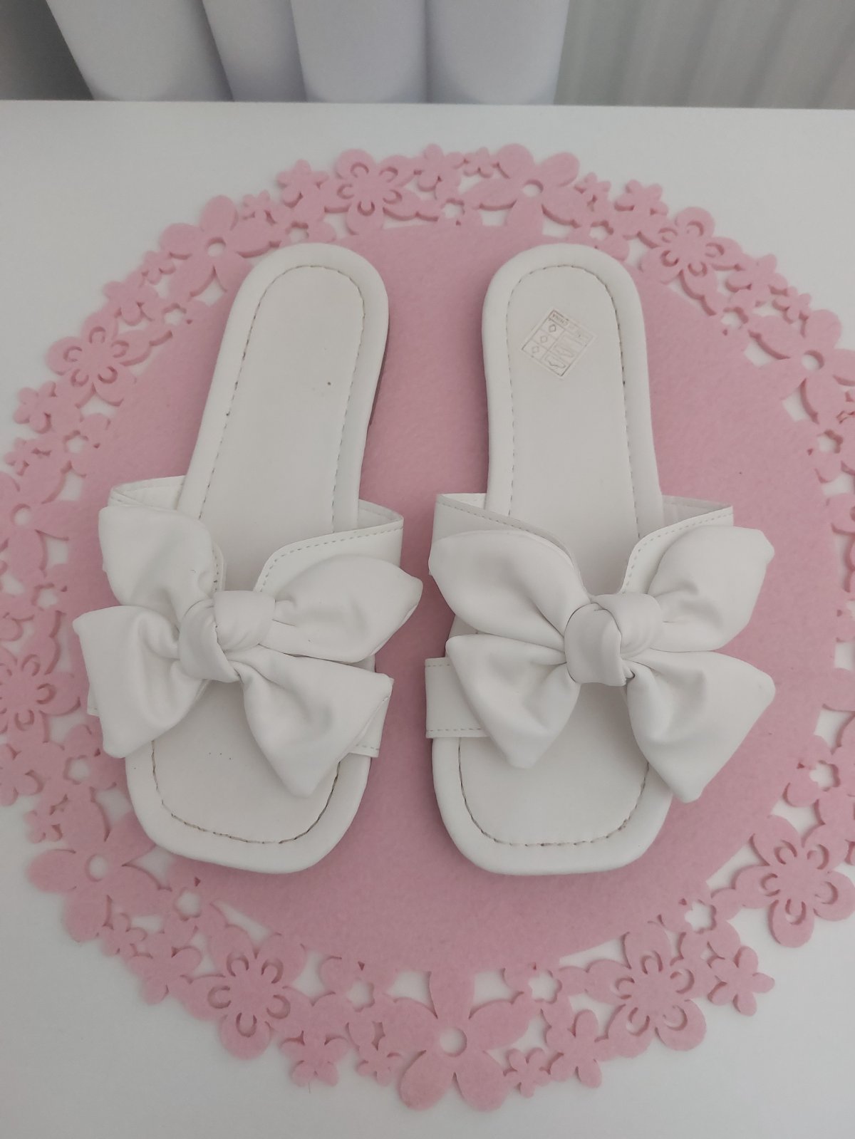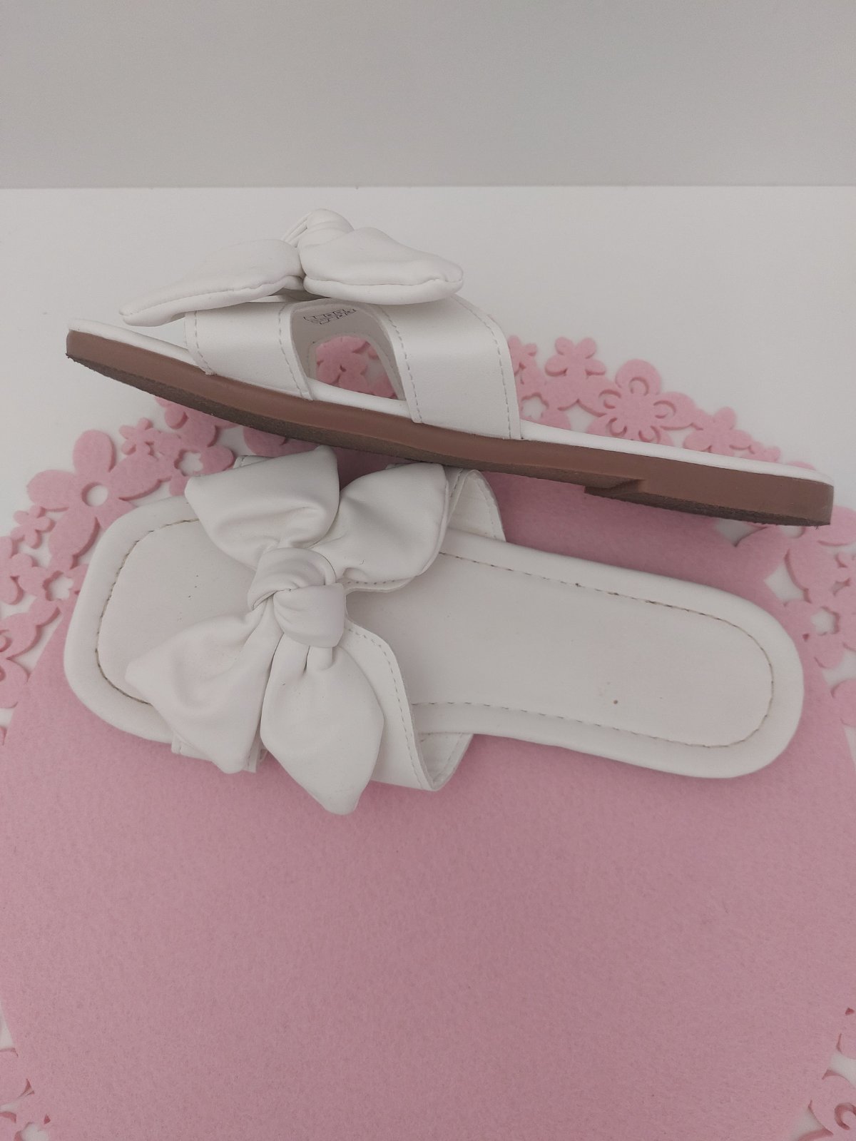 detské biele šľapky , špicaté, rovná podrážka veľkosť 35, vnútorná dĺžka 22cm sú len vyskúšané