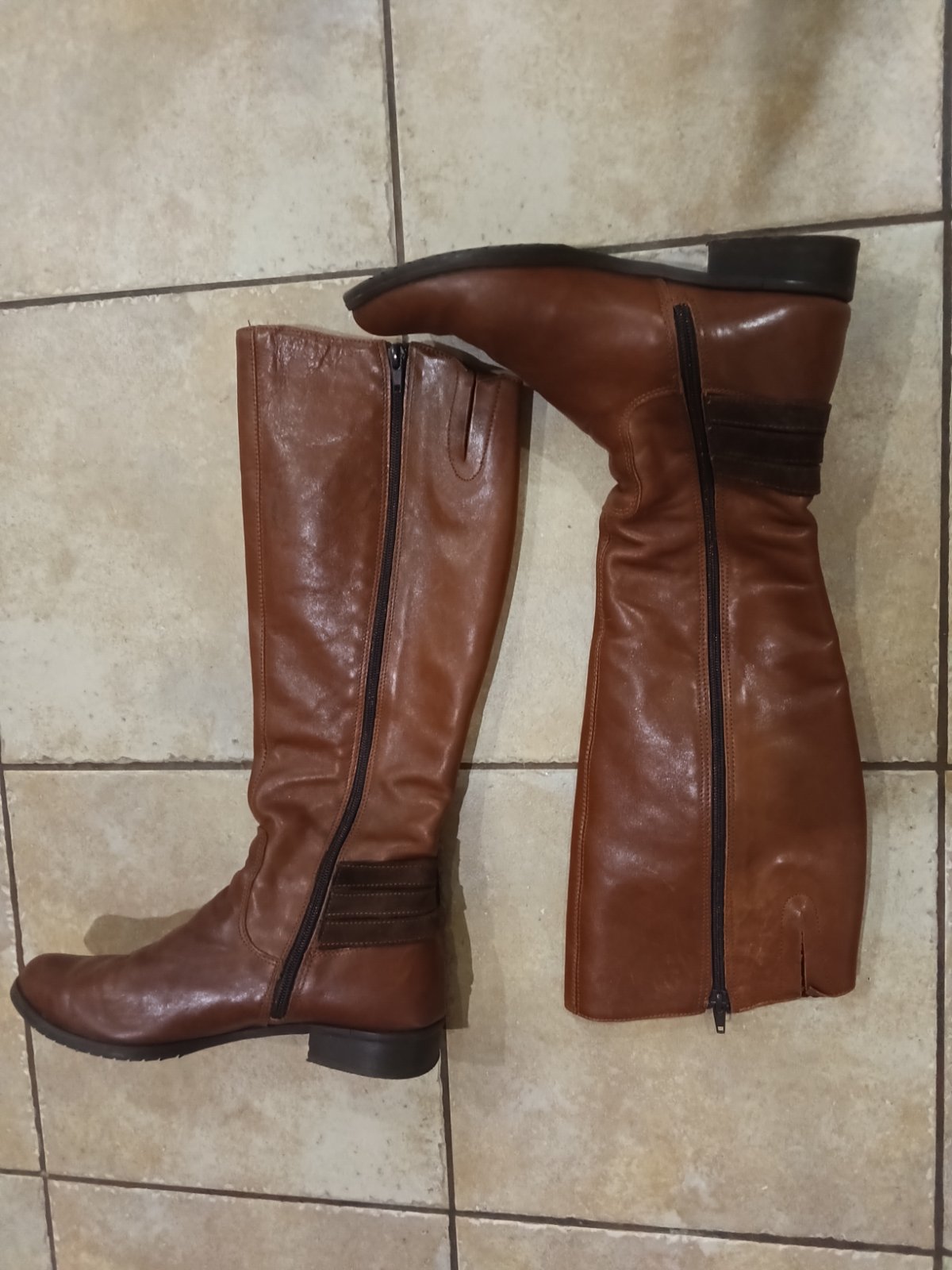 Kožené cizmy z mäkkej koze. Zateplene. Zapínanie na zips. Zachovalé. Veľkosť 38