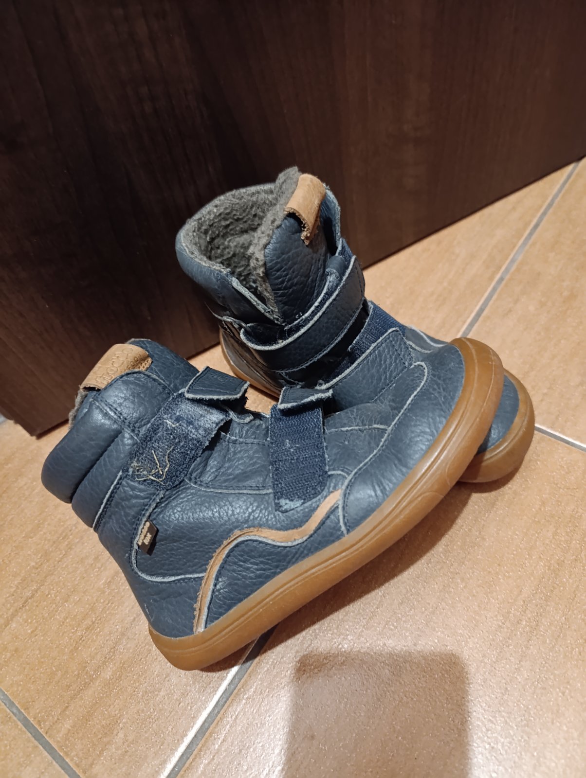 Minuly rok kupovane, 1 zimnu sezonu nosene barefoot Froddo. Vyborny stav. Paty lahko zoslapane. Suche zipsy drzia. Impregnovane. K dispozicii aj faktura. Velk 33 VD 220mm VS 79mm