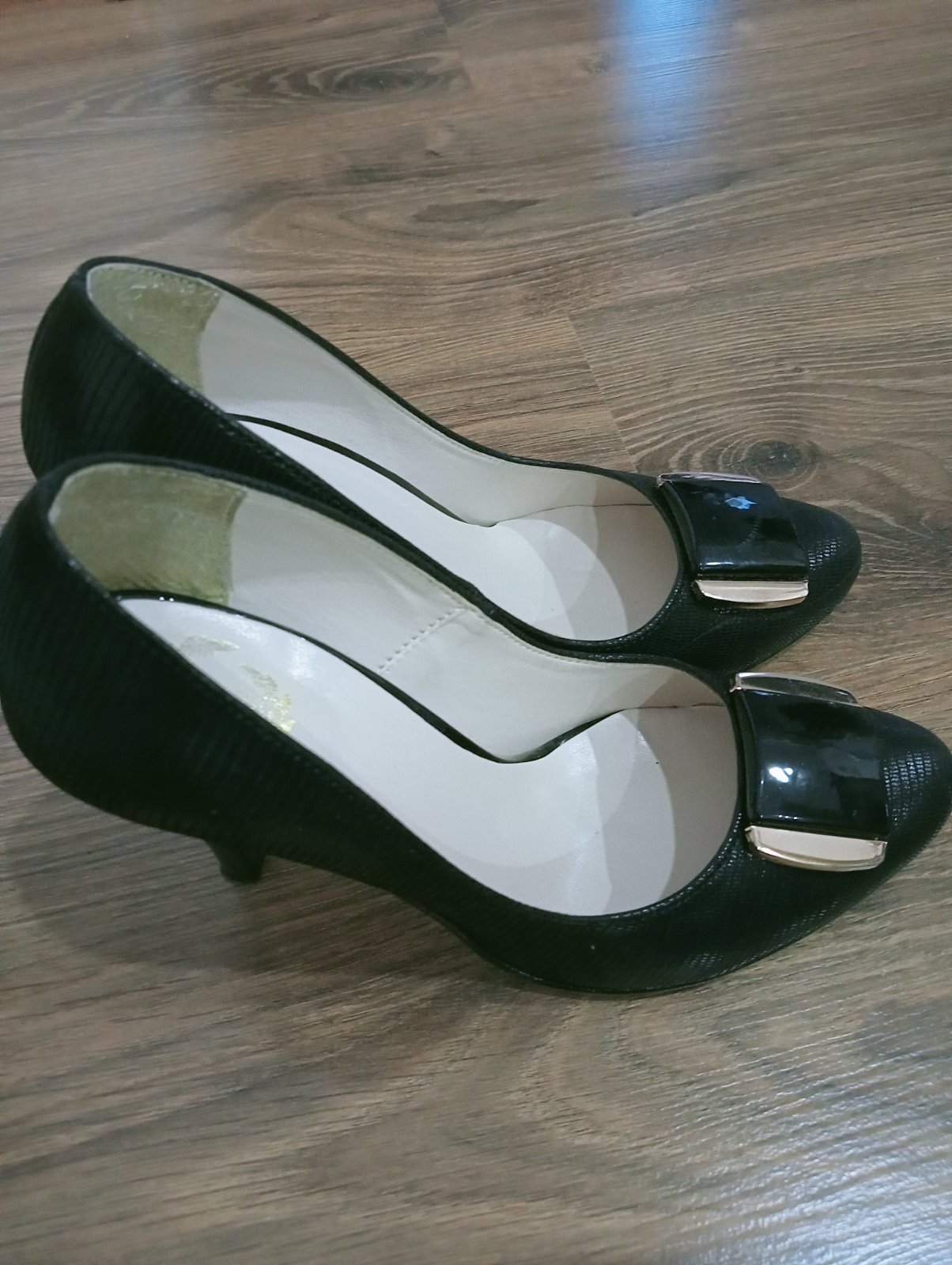 Krasne cierne lodicky zCCC...dva krat obute...cize ako nove...nevynosim preto posuvam dalej...vel.37 vnutorna dlzka 24cm..vyska opatku 9cm...