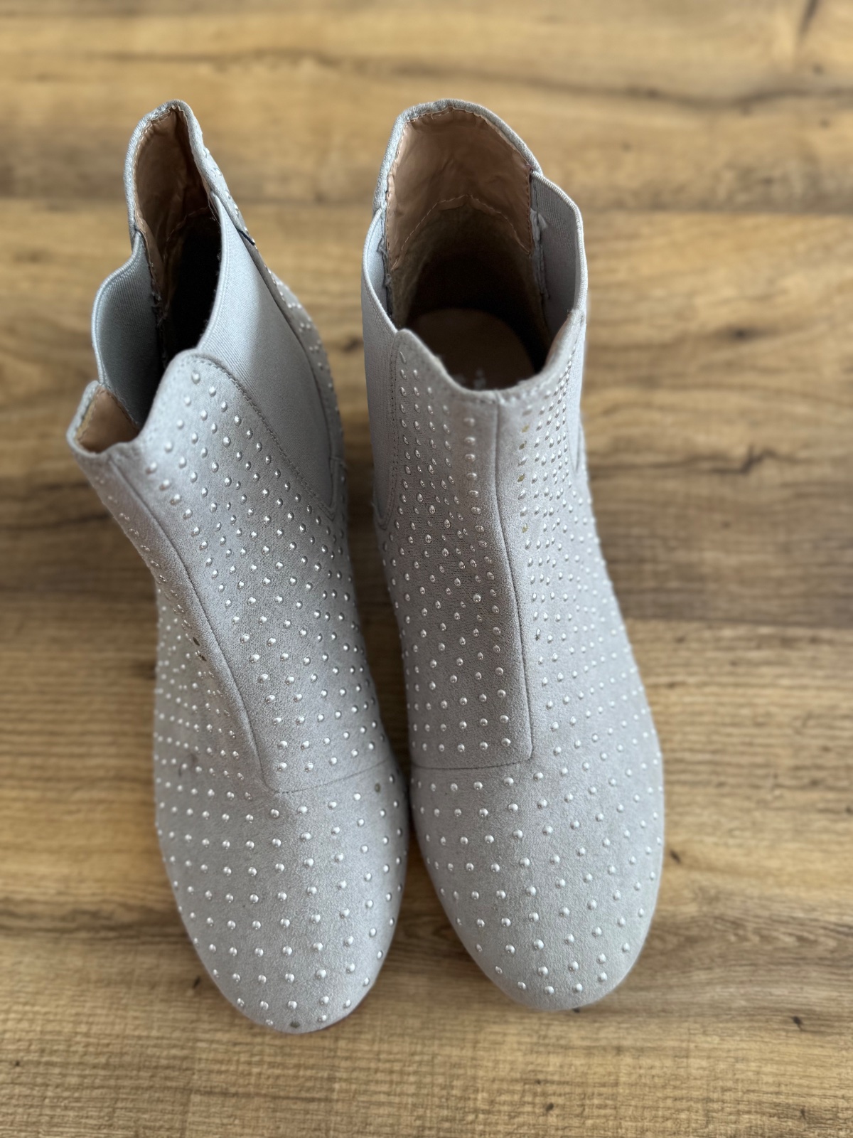 Krásne, dámske čižmičky,zdobené čiernymi kamienkami.malo nosené