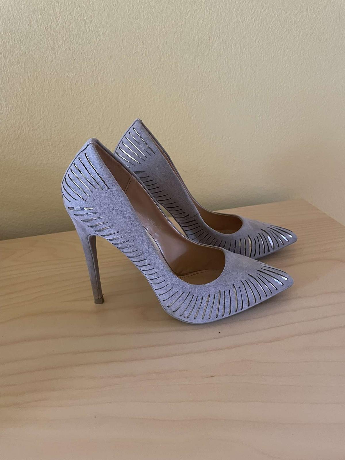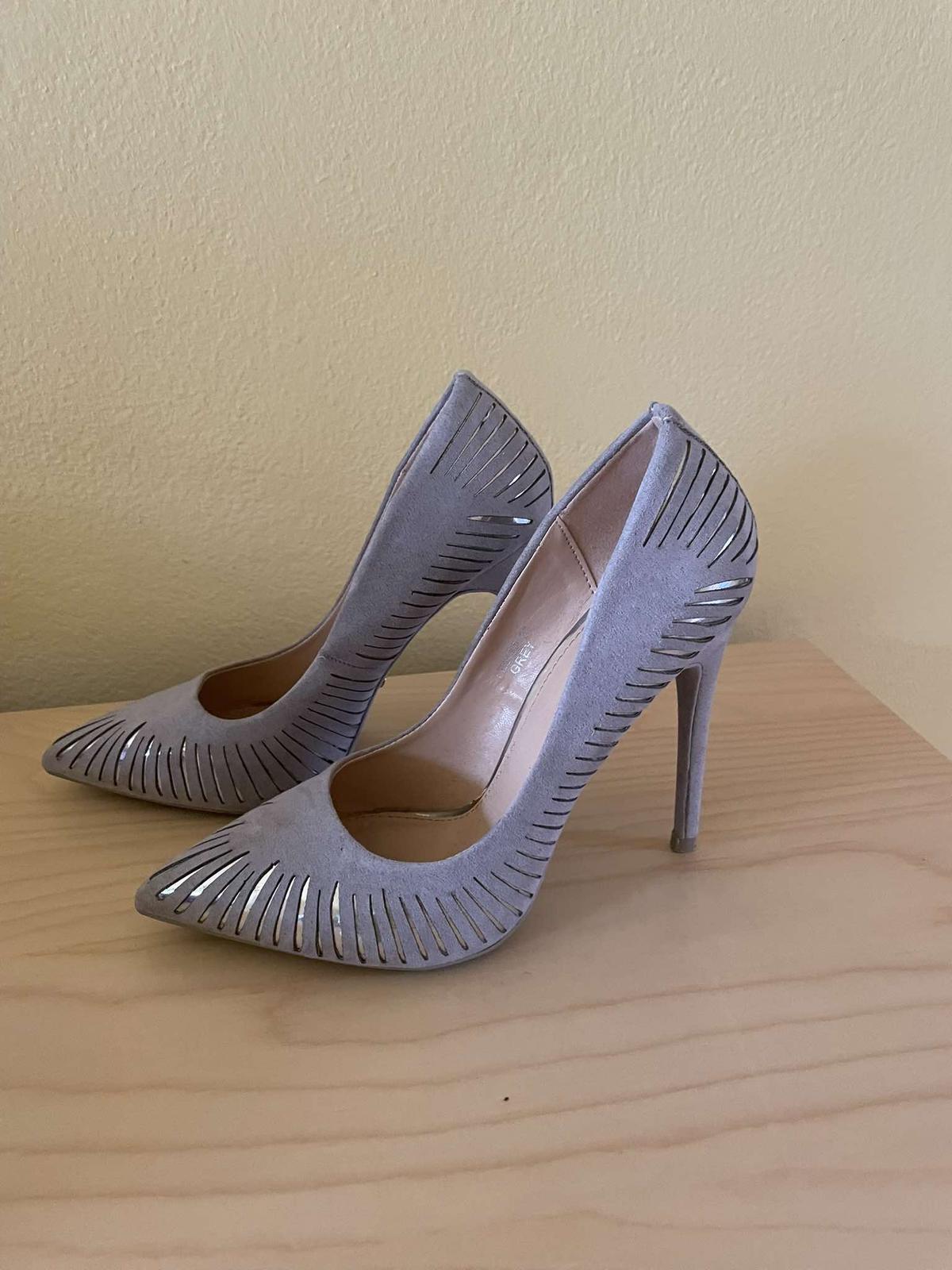 Top stav, raz obuté na svadbe. Veľmi pohodlné, pekne ukážu na nohe. Náhradné podpätky pribalené. Výška podpätku 7 cm. Kúpené v Mohito v zľave za 20,- eur.