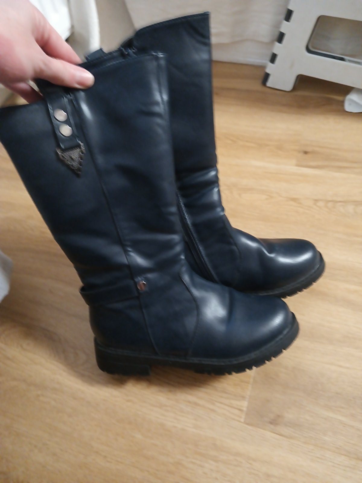 Predám teplé čižmy v peknom stave. Jediná chybička je zlomená ozdobná pracka naboku, viď foto. Super teplé, zips v poriadku. Určené pre nôžku veľkosti 36.