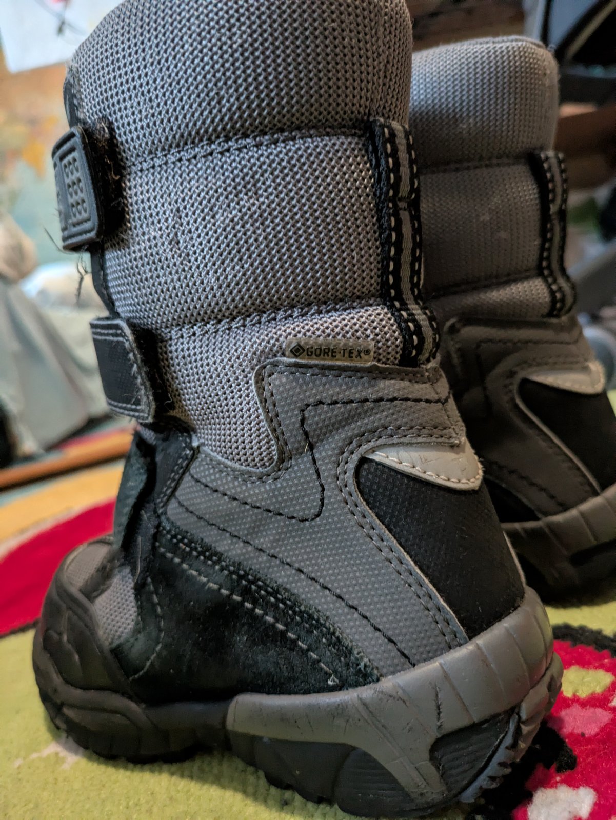 Vysoke zimne topanky, super do hlbokeho snehu. Su starsie, kupovane tu na modrom konikovi, ale nemaju ziadne vyrazdne poskodenia a na sankovacky a gulovacky urcite este posluzia. VD 19cm