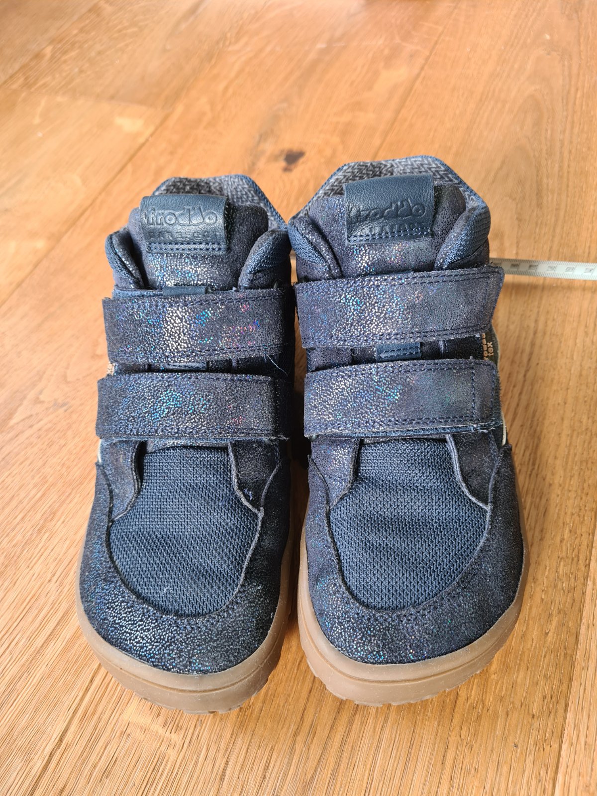Prechodné dievčenské topánky v krásnom stave, krásna tmavomodrá trblietavá farba :). Bez poškodenia.