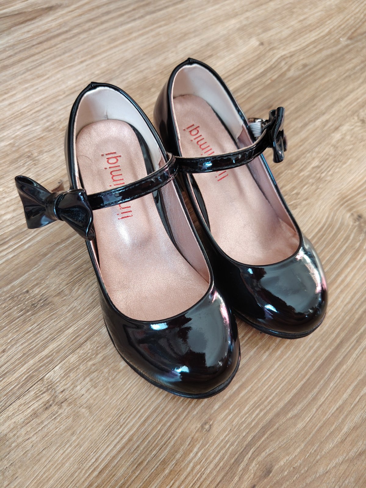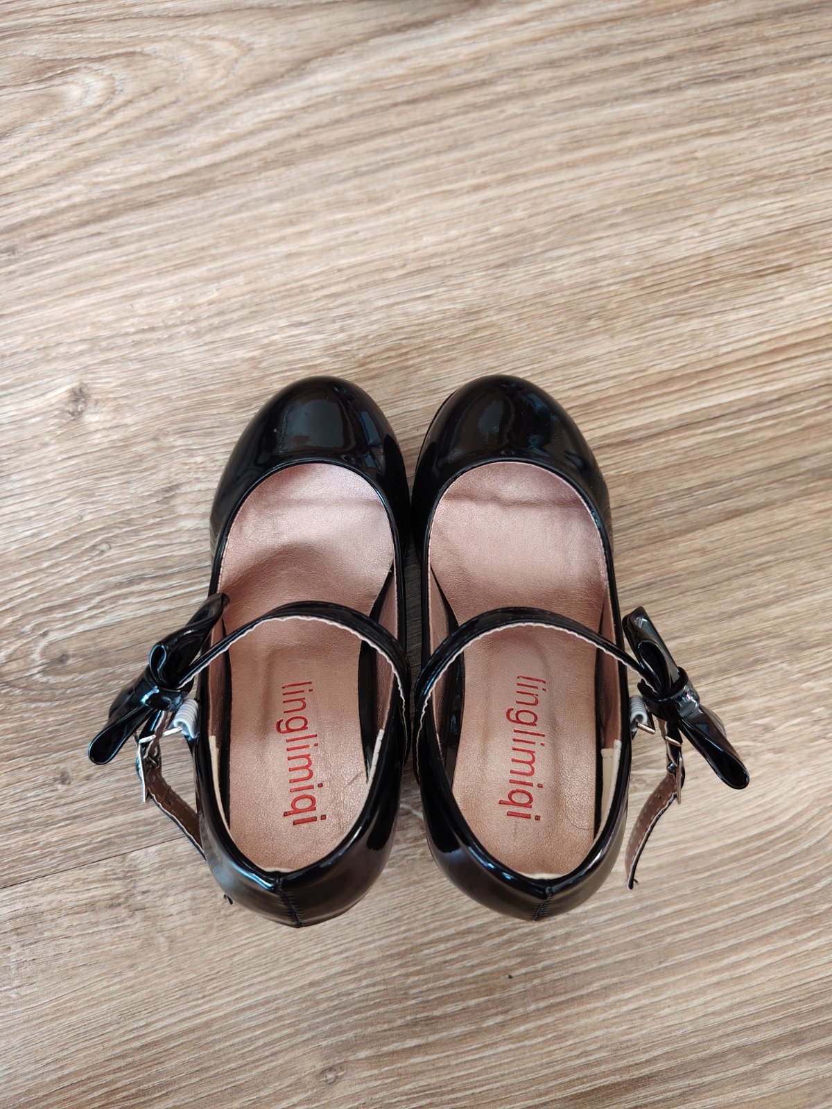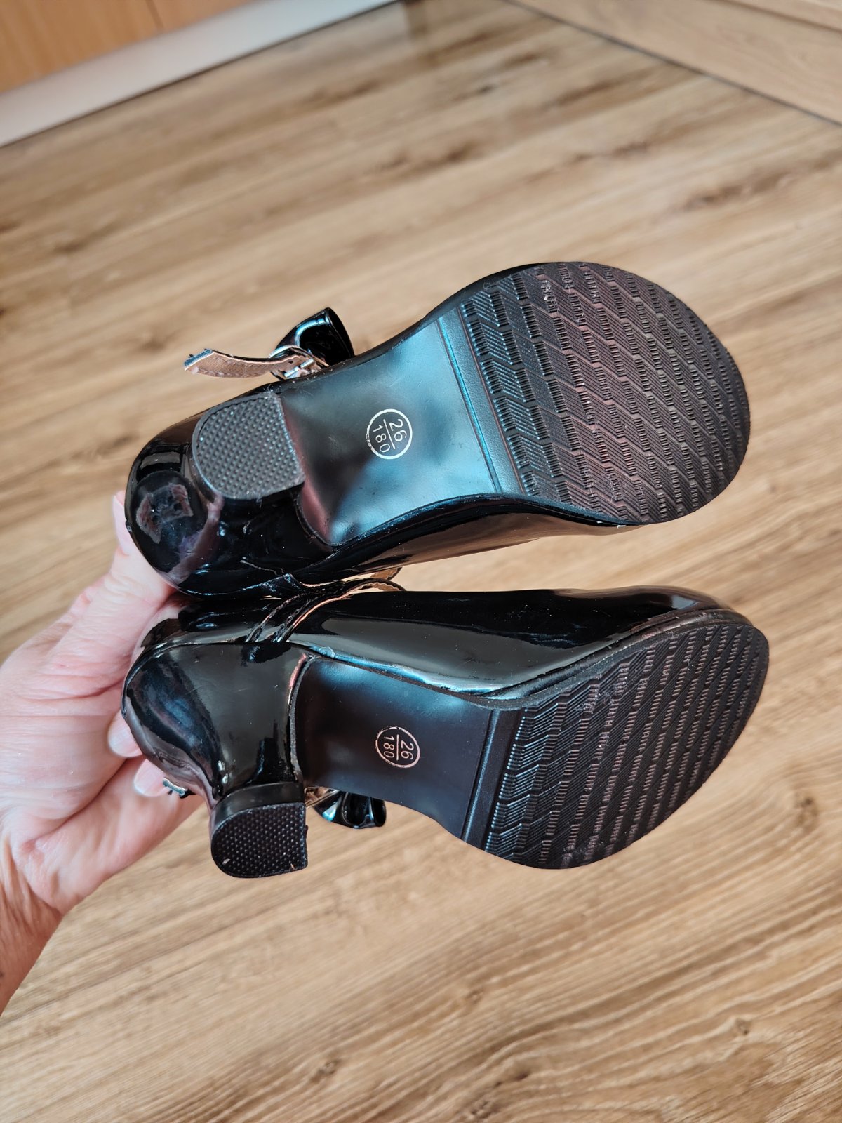 Krásne sandálky v štýle klopkačiek. Nosené len po dome. Super sedia, krásne lakovečky. Kupovali sme ich v Číne. VD 16,5cm