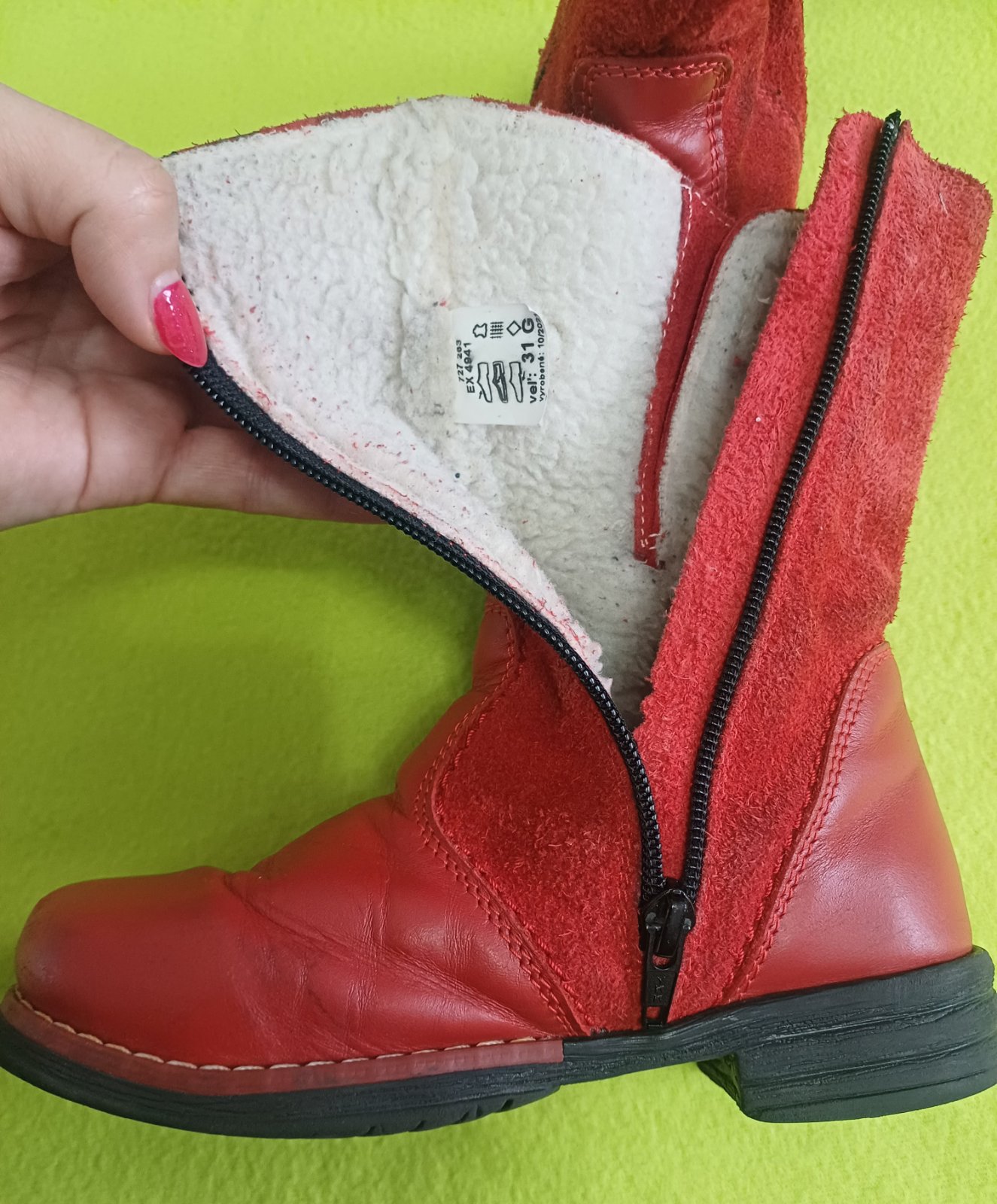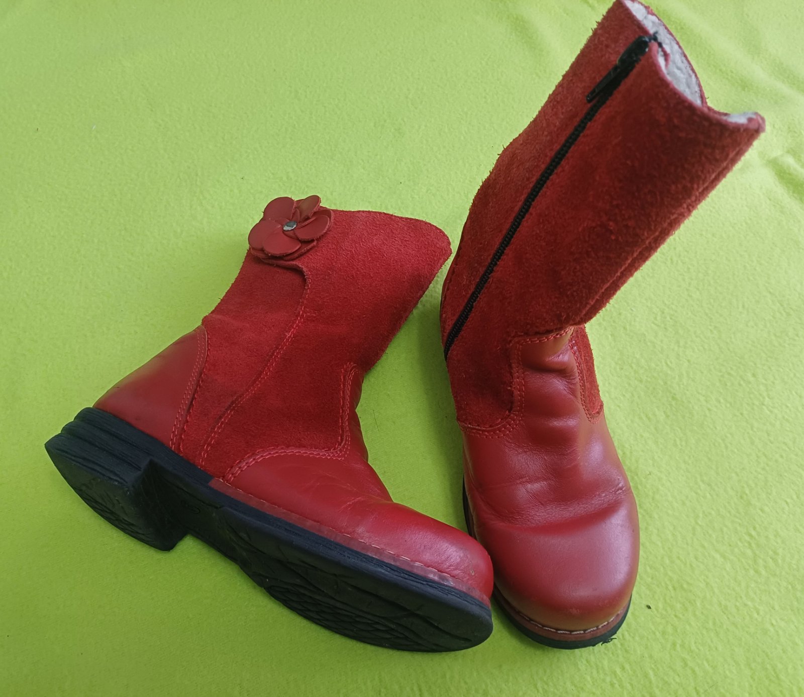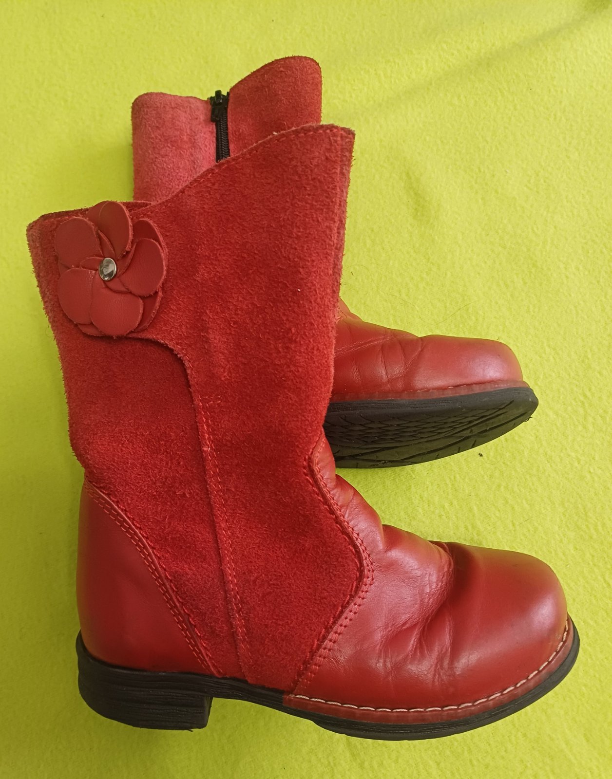 Predám celokožené čižmy červenej farby značky Slovobuv, veľkosť 31.