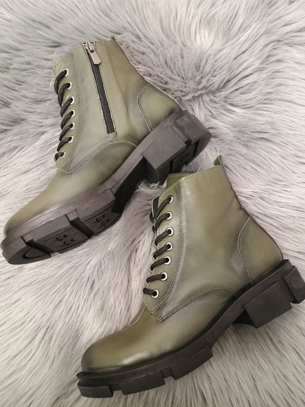 Topánky v jemnej zelenej farbe majú jedinečný dizajn, ktorý spája klasiku a moderný štýl. Topánky na šnurovanie vám umožňujú prispôsobiť ich nohe, čím zaisťujú dokonalé prispôsobenie a pohodlie nosenia. Nazúvanie uľahčuje postranný zips. To, čo odlišuje tento model, je vysoko kvalitný materiál, z ktorého je vyrobený. To zaisťuje nielen estetický vzhľad, ale aj odolnosť a komfort používania. Tieto topánky sú skvelou voľbou na mnohé príležitosti a každodenné používanie. Jednoznačne patria ženám, ktoré si cenia jemnosť, eleganciu a pohodlie, sú tieto topánky ideálnou voľbou.