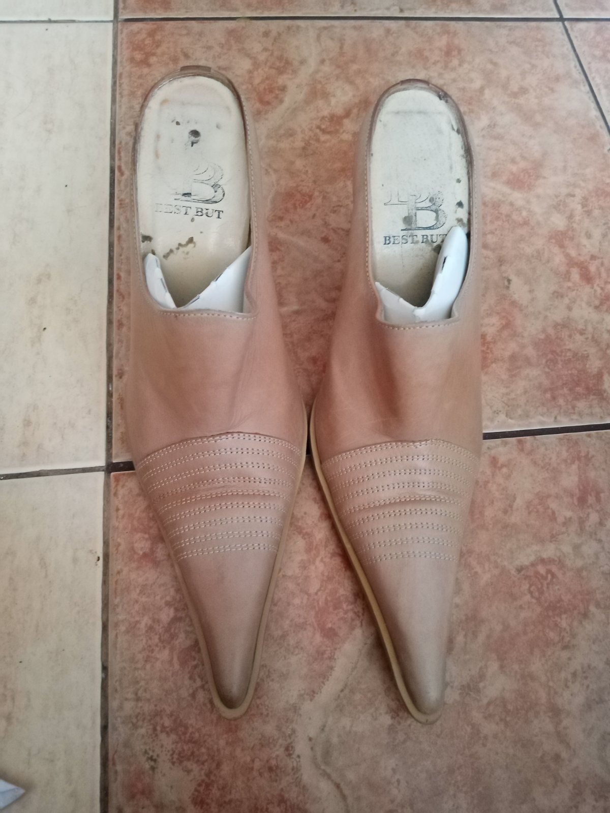 Predám krásne šľapky v dobrom stave.opetok je kovový. Kožené