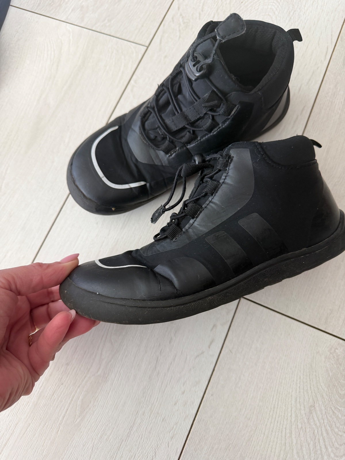 Ponúkam čierne protetika nosili sme na striedačku s inými topánkami .Nosene boli jednu jeseň takže sú vhodne do školy .Topanky sú pohodlné ,mäkké …Pôvodna cena bola okolo 50e kupované nove…