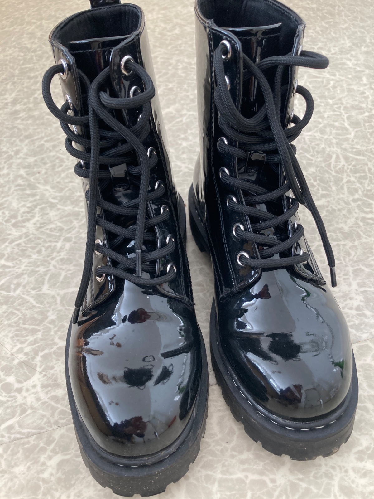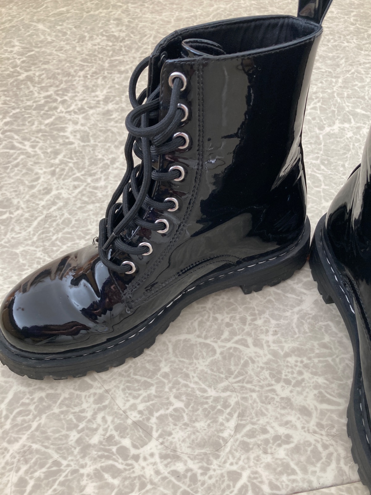 Zachovalé, bez poškodení, iba na pravej topánke mierne oškreté - viď foto, dá sa pretrieť boxom Vrch čižmy je na pevnejšiu gumu - prispôsobí sa Veľkosť 37, vnútorná dĺžka 23,5 cm Výška opätku 6,5 cm