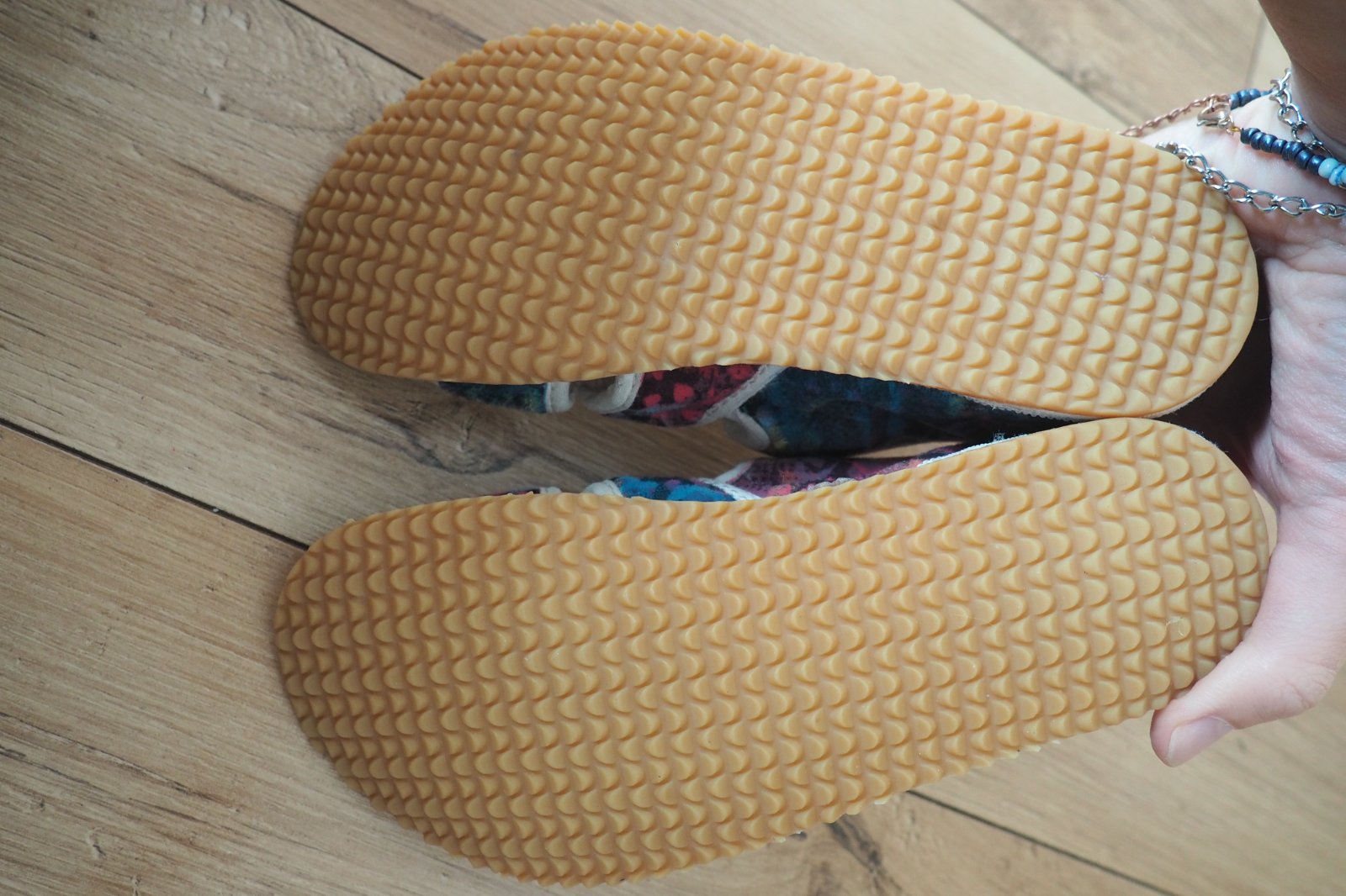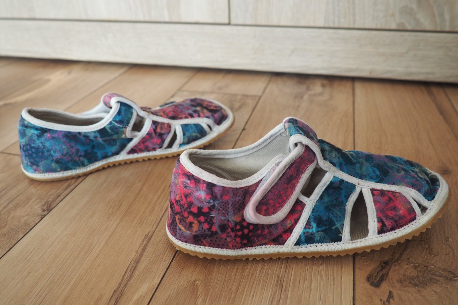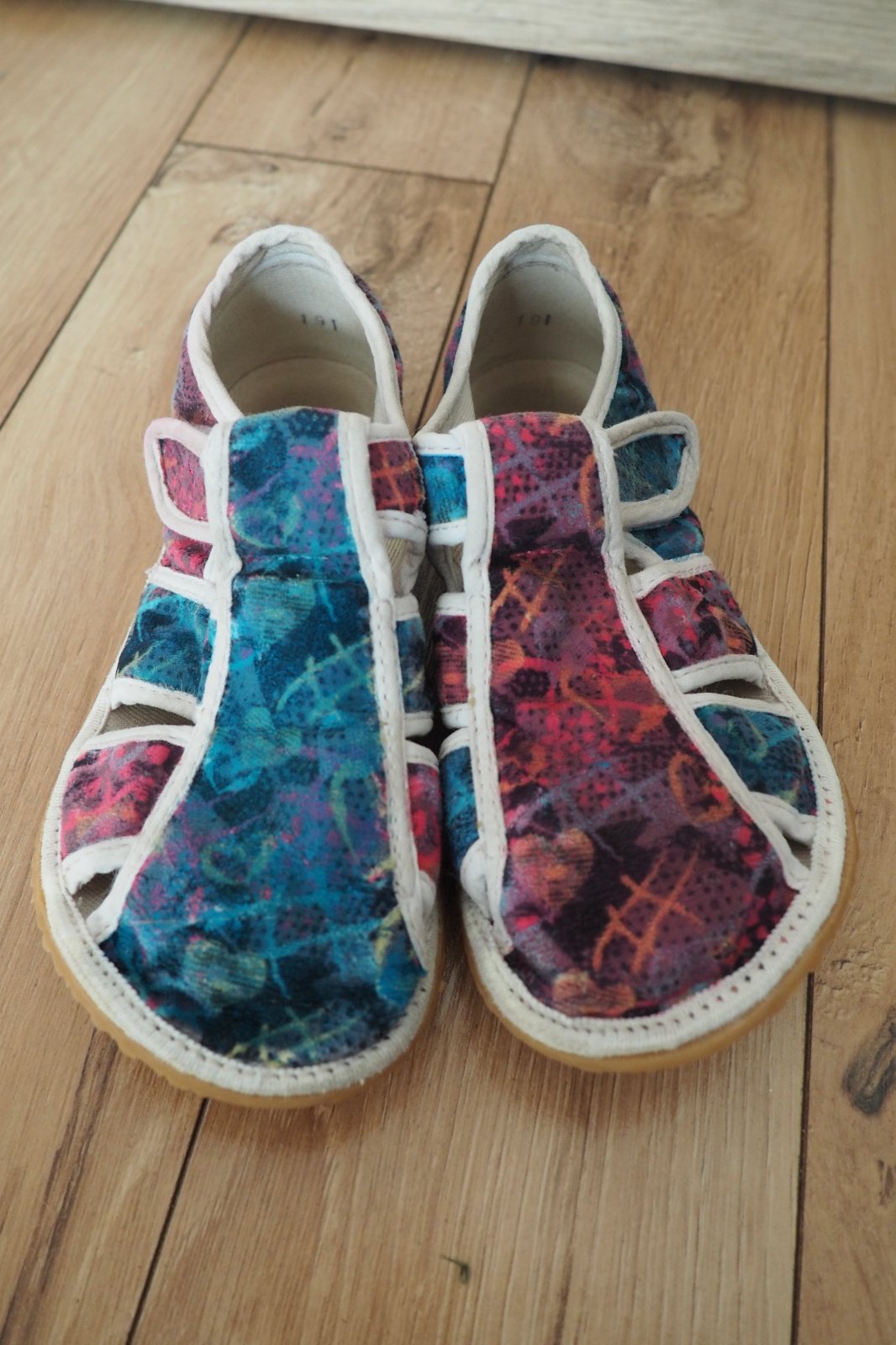 Ponúkam nosené BF papuče Jonap Home. Papuče sú prefarbené na dvojfarebno netoxickými farbami PentArt. Nie sú predraté, nosenie je trochu vidno, ale stále urobia veľkú službu. Podrážky v TOP stave, vyzerajú ako nové. Označenie papúč vnútri je 19. Vnútorné rozmery merané meradlom +12: 18,8 x 7,4cm.