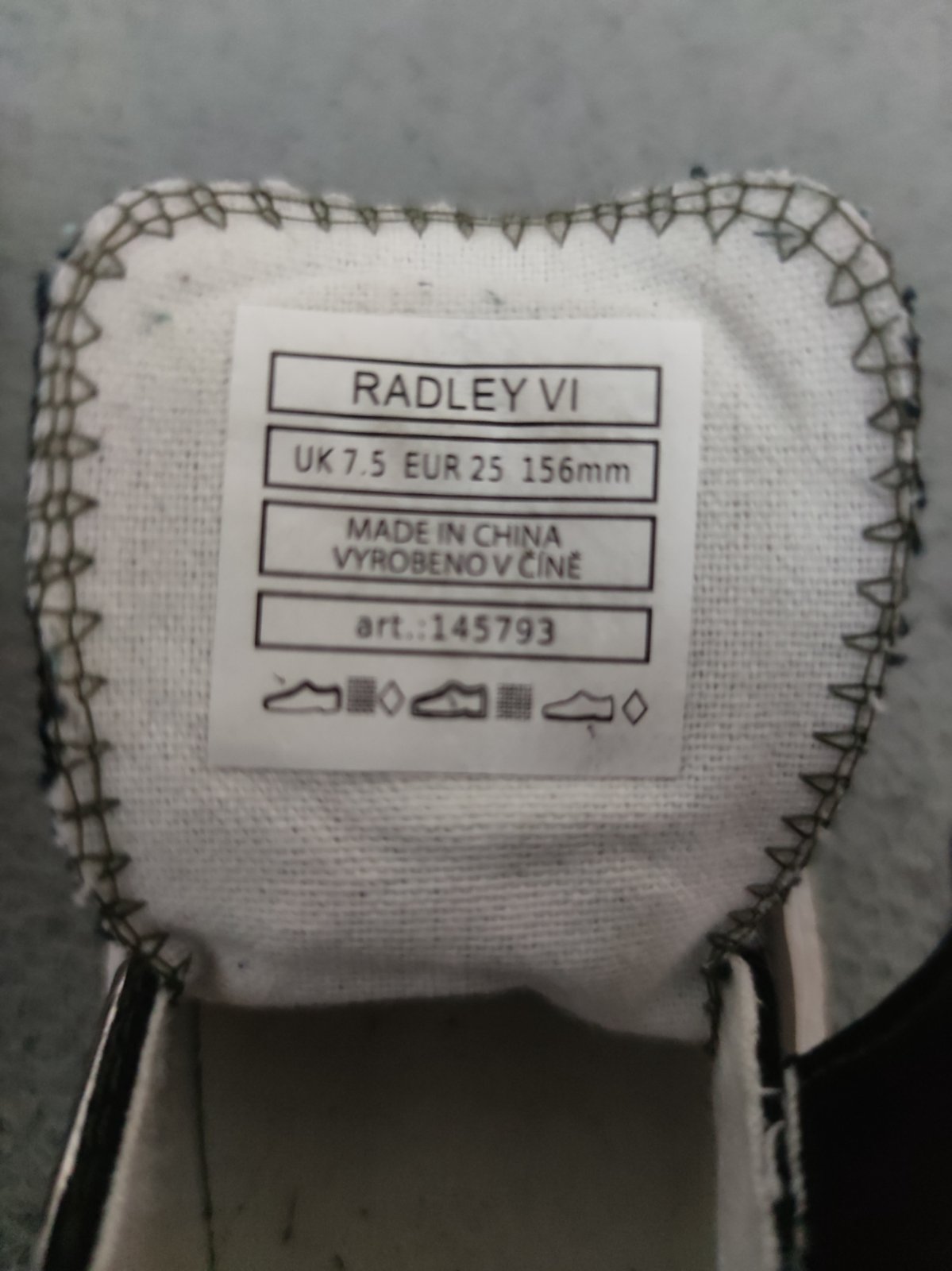 Použité, ale stále v dobrom stave. Veľkosť 25, vnútorná dĺžka cca 15,5cm. Vpredu trošku ošúchané viď foto