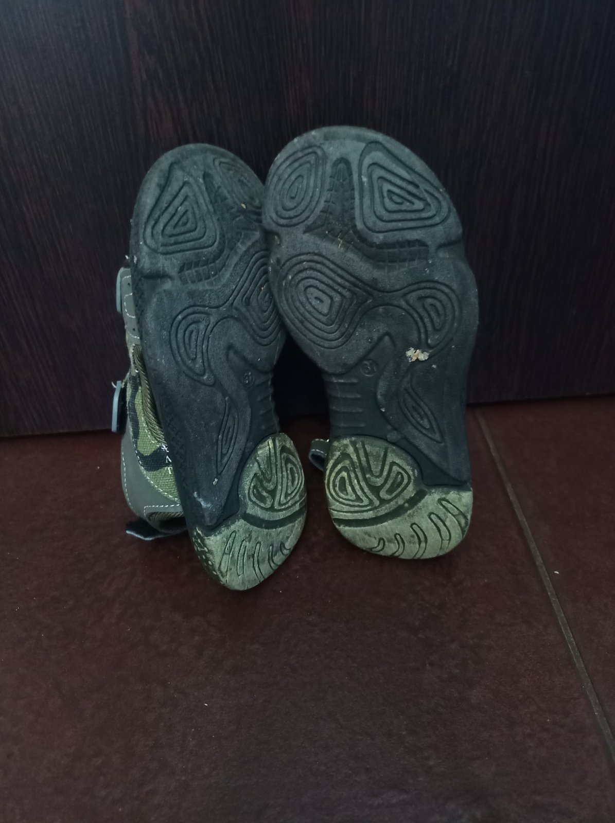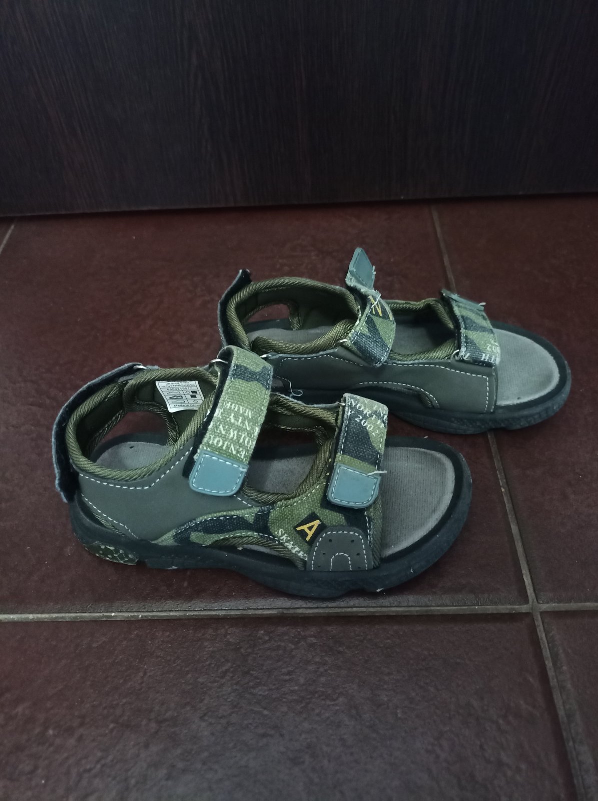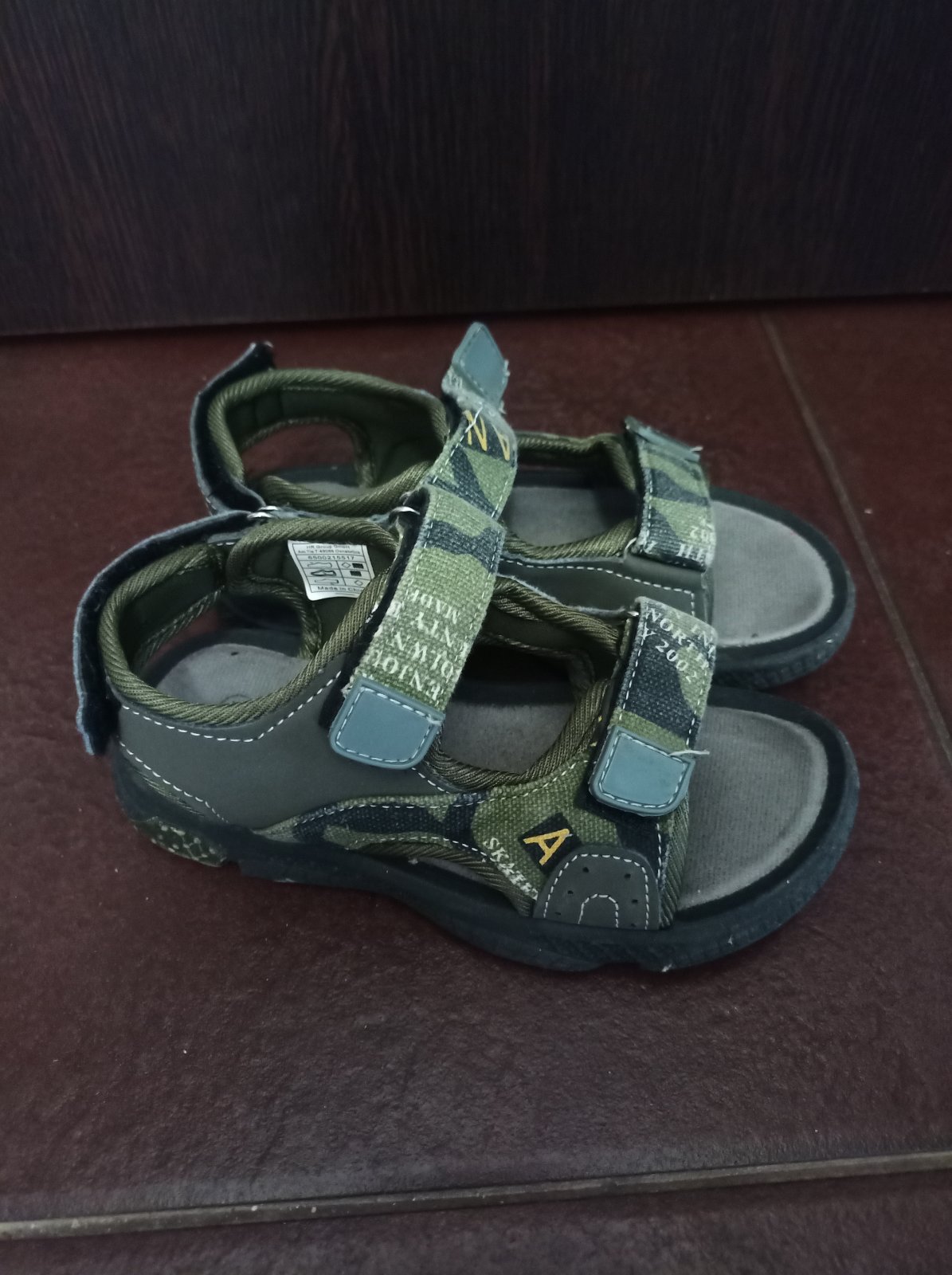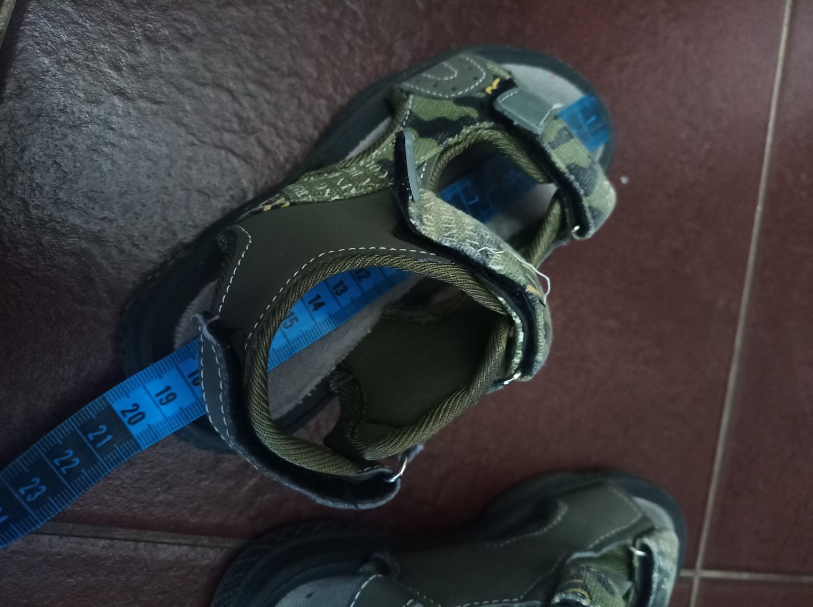 Sandále maskacove číslo 29, raz obute