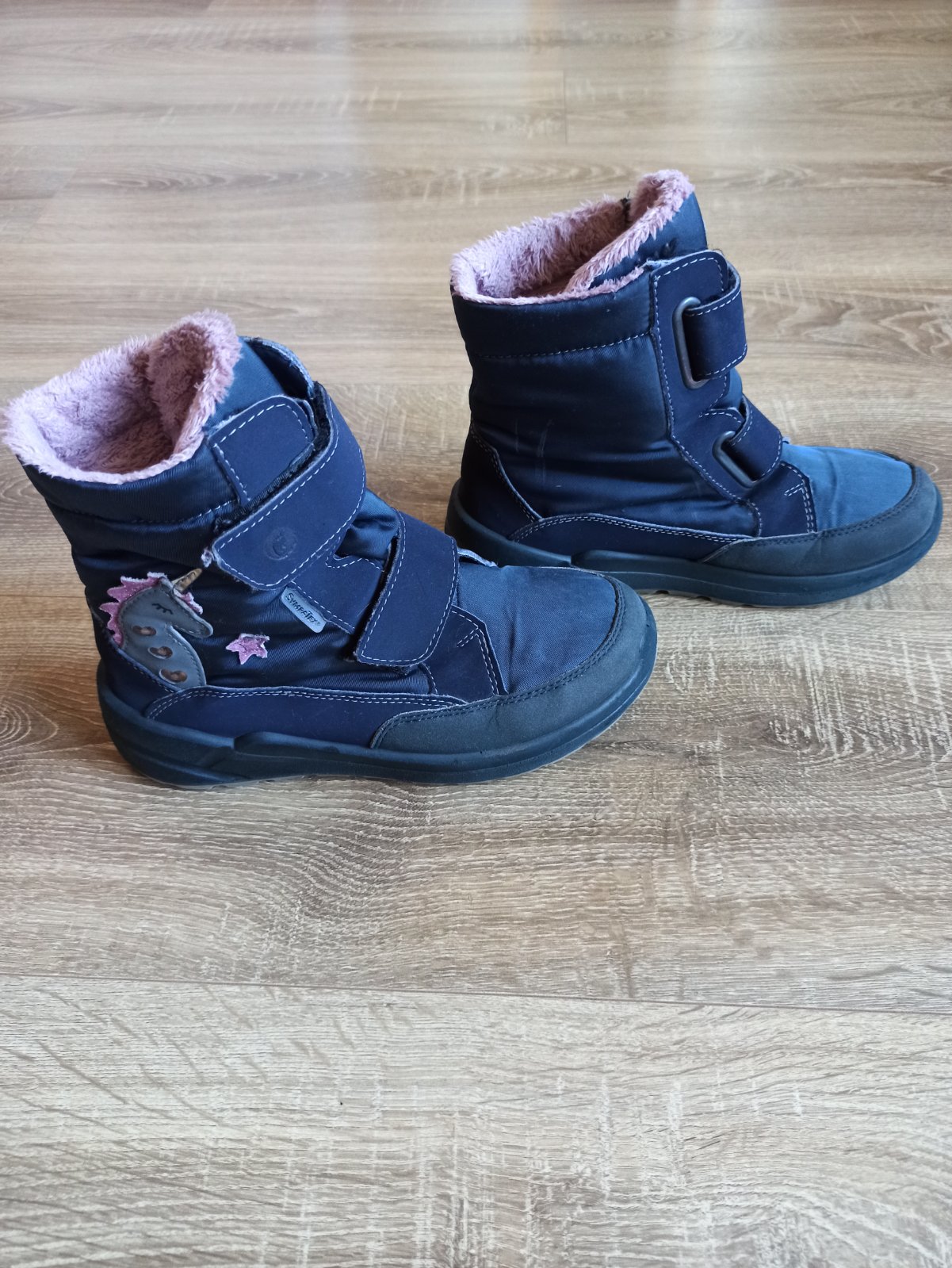 Predam cizmy zateplene na jesen. Unisex . Velkost 33. Tmavomodre