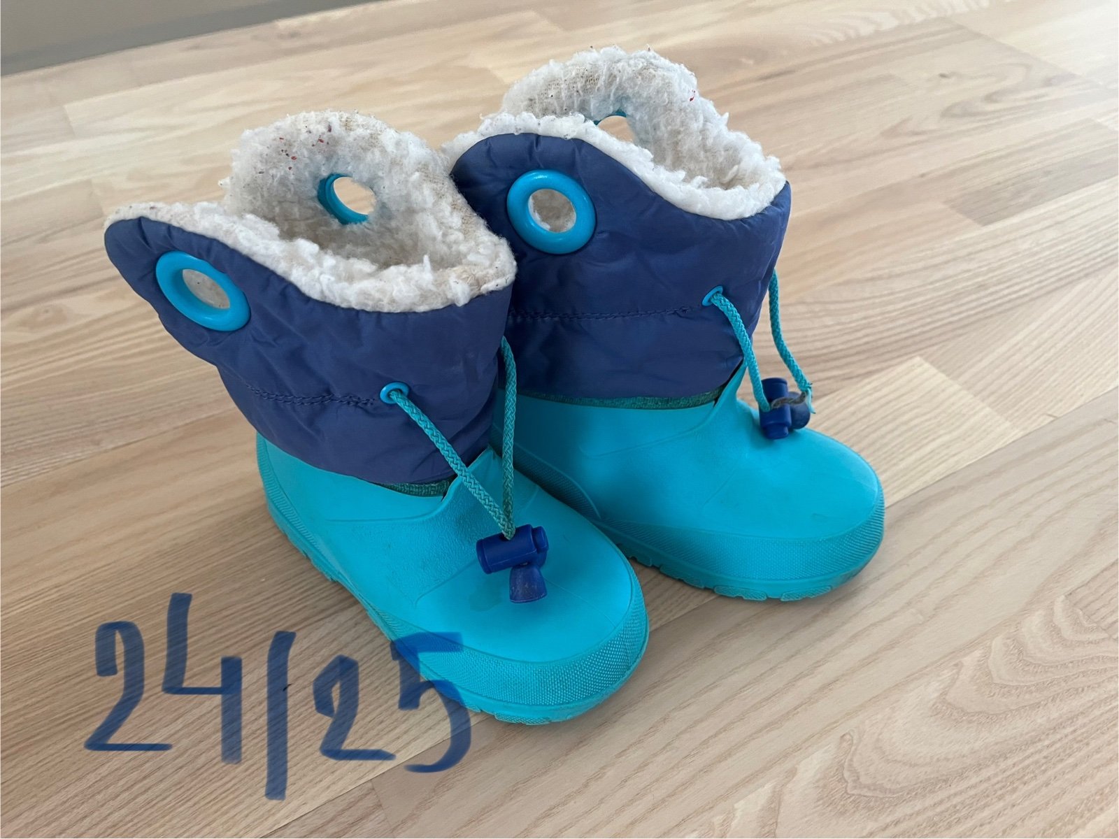 Predám dievčenské snehulky veĺkost 23-25 v peknom stave, kupované v decathlone akurat na jednej topánke popísané perom viď foto nie je moc vidno iba zblízka.Cena 8 eur