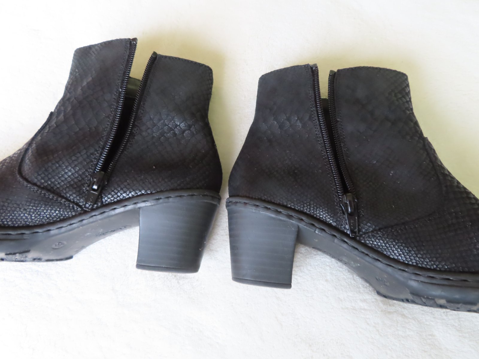 Kožené kotníkové čižmičky Rieker, veľkosť 38, vnútorná dlžka 24,5cm, opätok je stabilný, 5cm vysoký.
