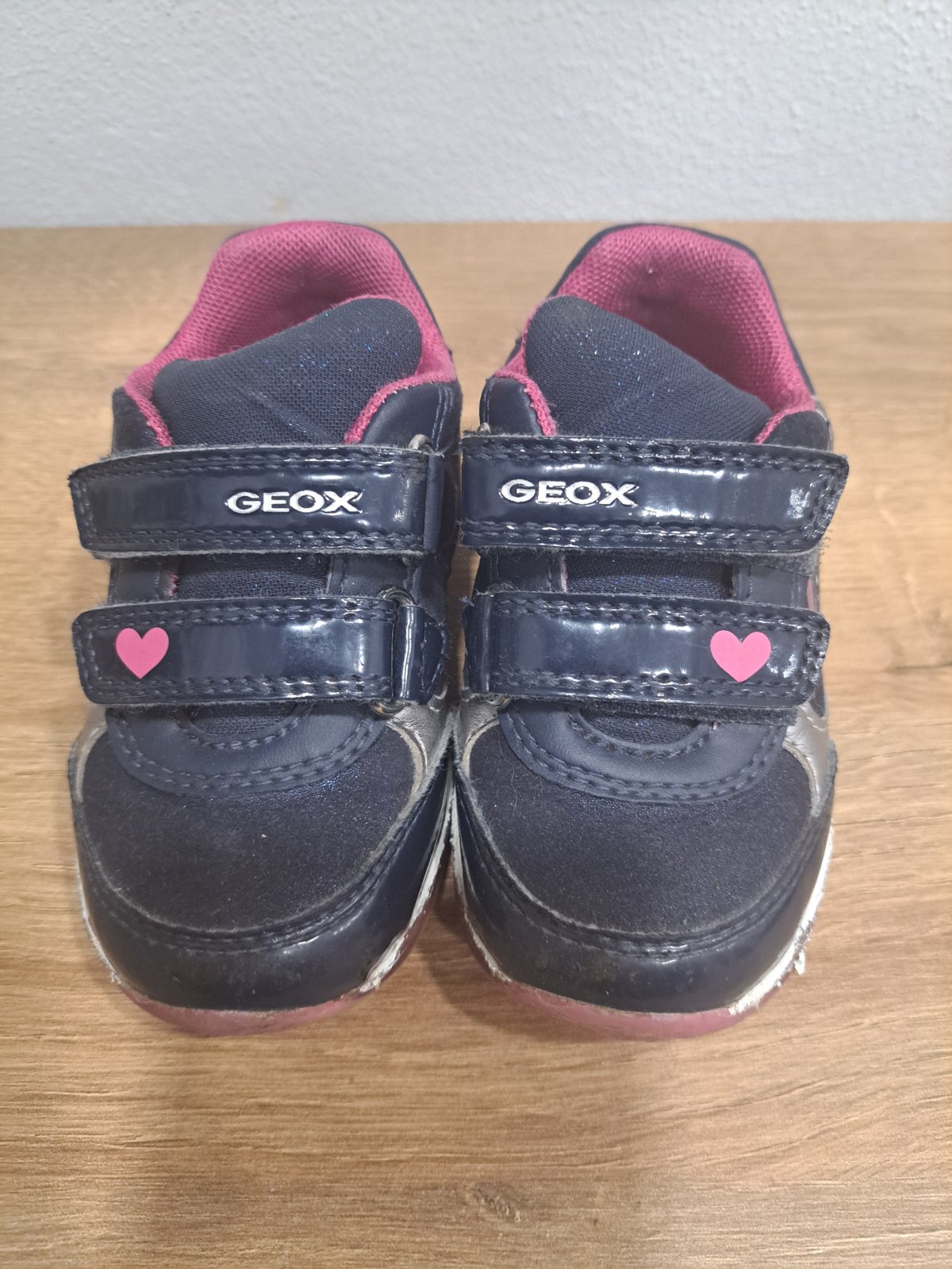 Predám blikajúce tenisky Geox, nosený stav. V predu trocha prasknutá koža a tiež jemno aj na boku len povrchovo. Ale určite ešte poslúžia, inak bez poškodenia.