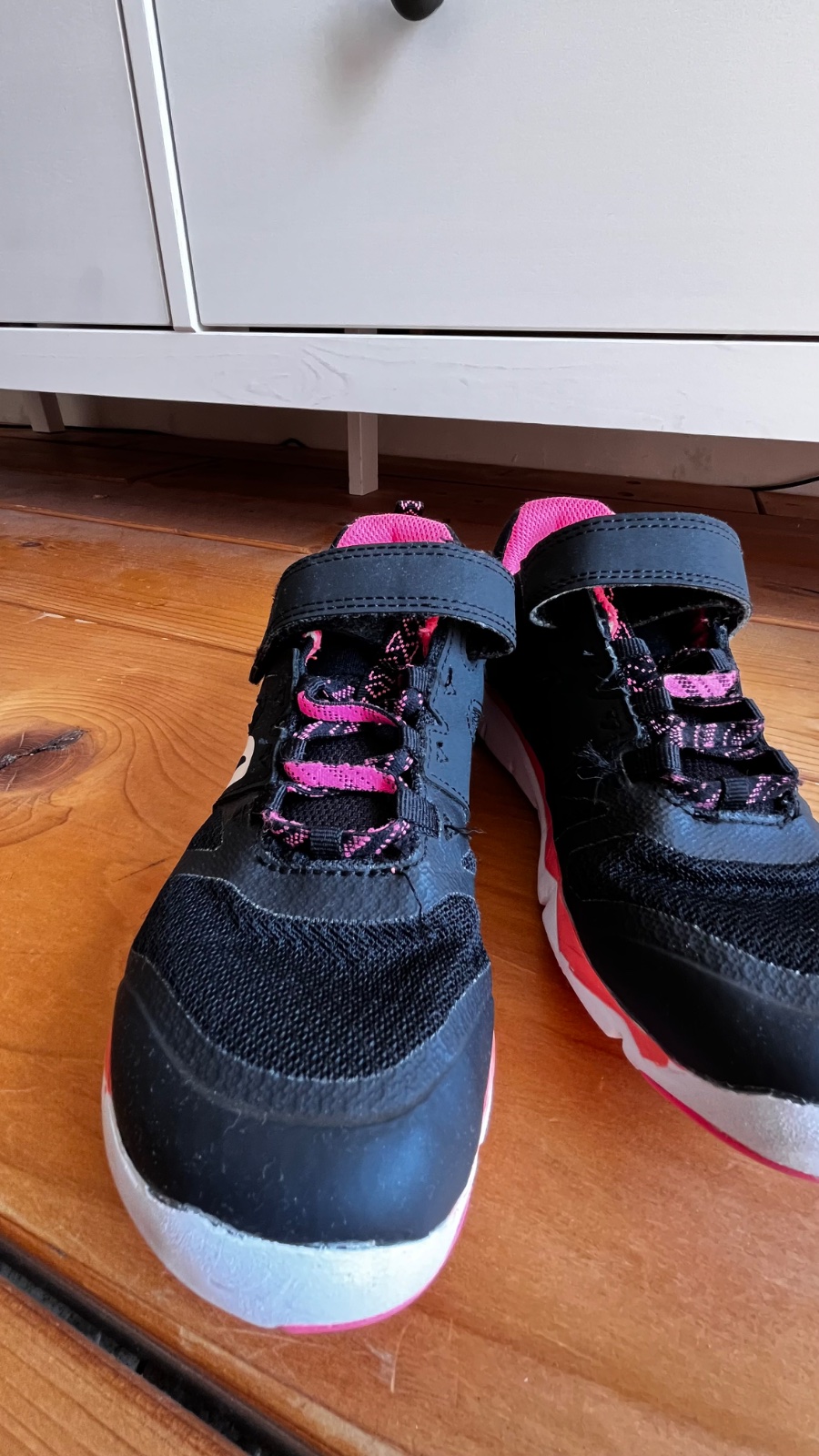 redám botasky Newfeel, kupované v Decathlone. Veľkosť 35. Kupované nové, nosené len v škole na telesnú, nezničené. Vo veľmi dobrom stave, nefajčiarske prostredie. Botasky sú veľmi ohybné vo všetkých smeroch, ľahké a pohodlné, podrážka non-marking, suché zipsy funkčné. Kupujeme každý rok väčšiu veľkosť - odporúčam.