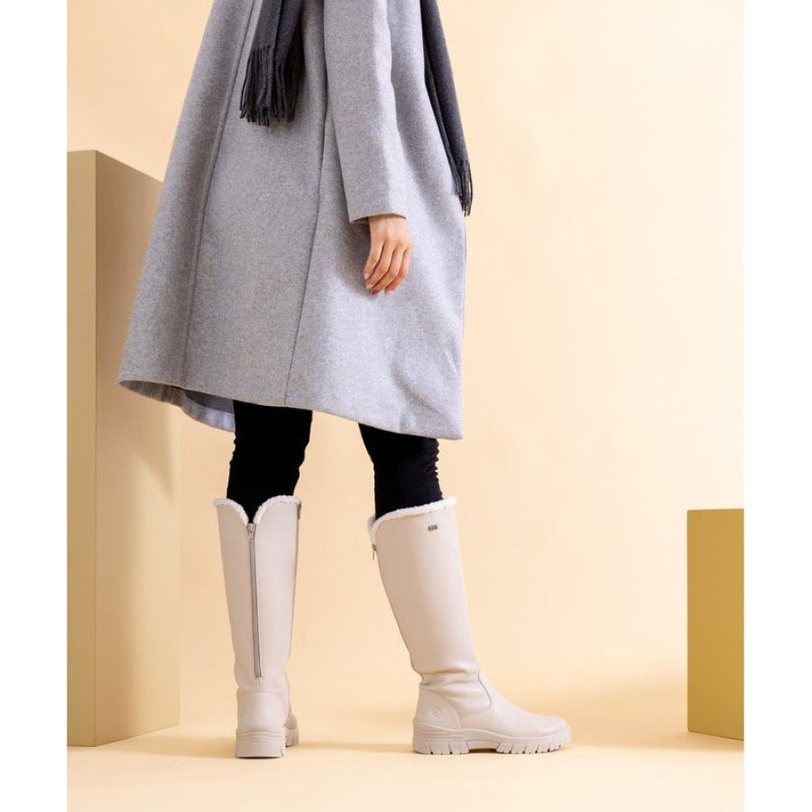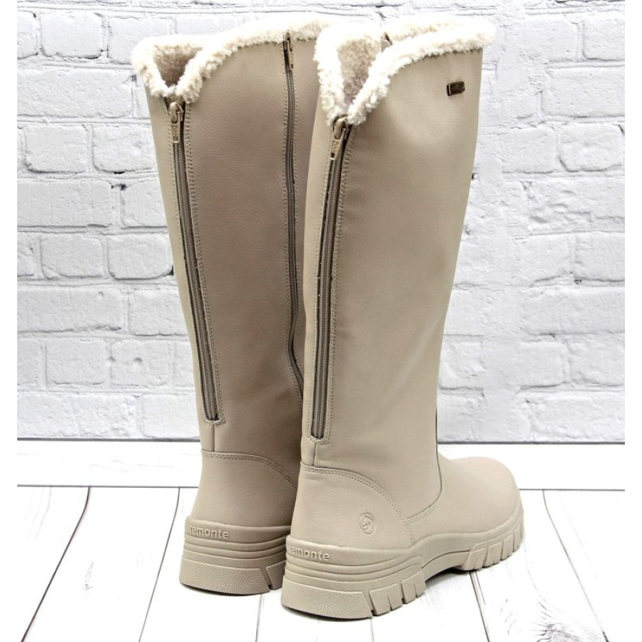 Obuv Remonte je vyšší rad značky Rieker a táto značka prišla so zimnou novinkou vysokých nadčasových čižiem v béžovej farbe. Zvršok je vyrobený z kvalitnej hladkej kože, je nepremokavý a je doplnený o logo značky. Sú veľmi pohodlné aj počas dlhšieho nosenia, hodia sa ku kabátu aj zimnej bunde. Čižmy sa veľmi ľahko kombinujú. Z vnútornej a zadnej strany sú zipsy. Topánky sú vyteplené a budú vás hriať počas celej zimy. Použitá technológia Remonte TEX, ktorá zaručí sucho aj počas dažďu či snehu.