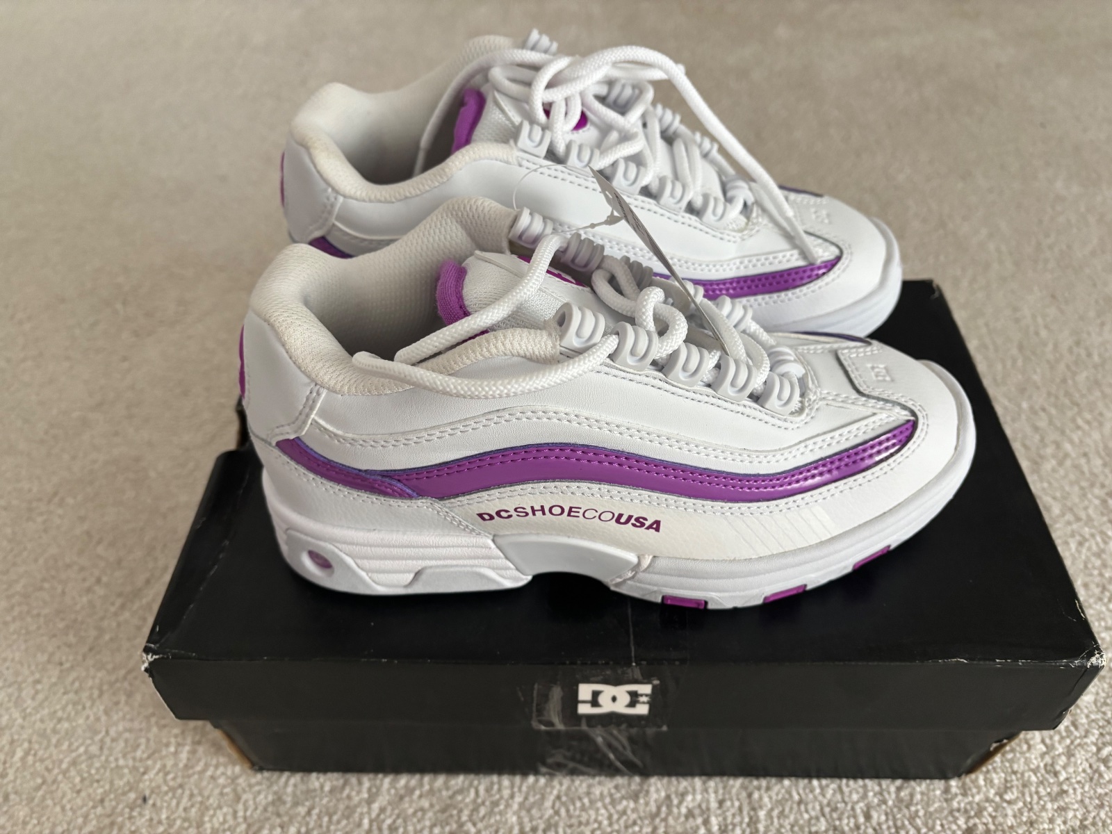 Stylove kozene tenisky DC shoes, pohodlne obuvanie na suchy zips. Synove oblubene, co sa uz odzrkadlilo na osuchanej latke na patach vo vnutri topanky. Nie je tam este diera, ale najma v lavej top...