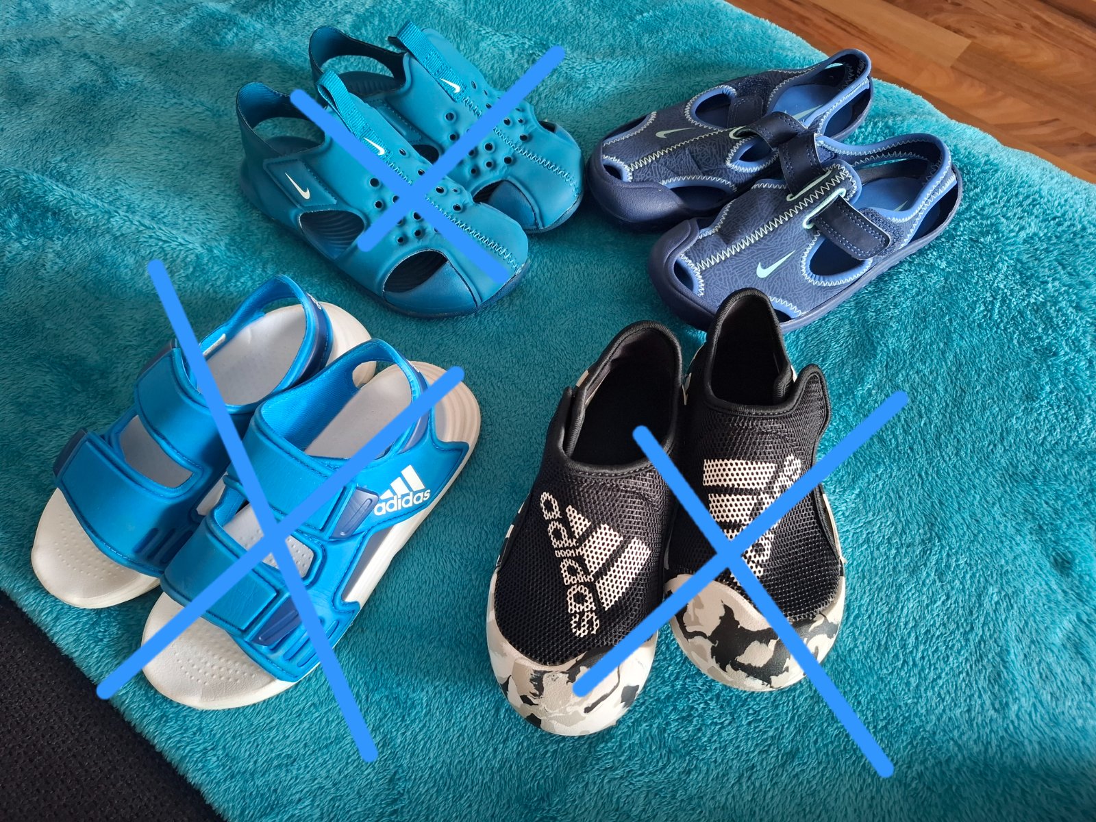 Veľmi dobrý nosený stav. Ľahučké, vhodné aj do vody, 2x zapínanie na suchý zips. Vnútorná dĺžka max. 16,5 cm.
