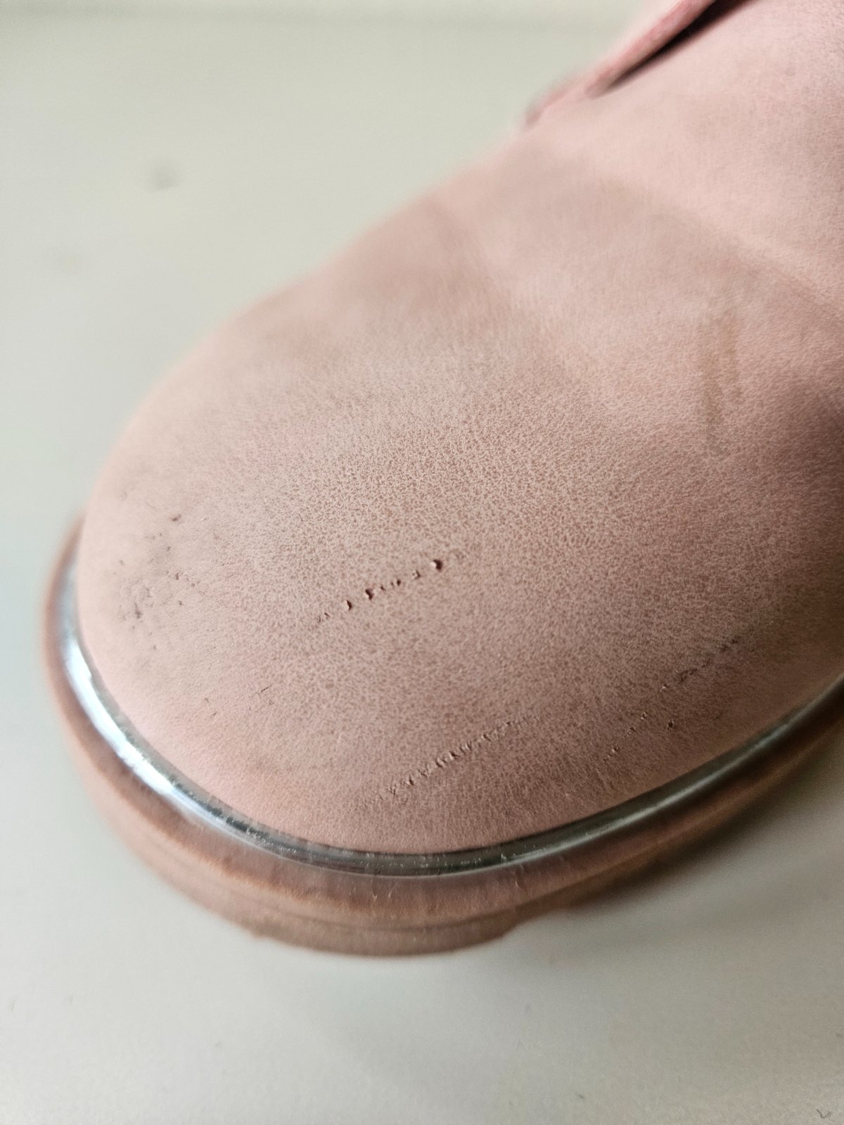 Uzasne vyslke čižmičky z brusenej koze, pudrovo ruzova farba, dcere uz male. Minimalne nosene, kedze skoly boli zavrete...uzka sara 15 cm, opatok 4cm. Krasny kusok pre stihle nozky😁