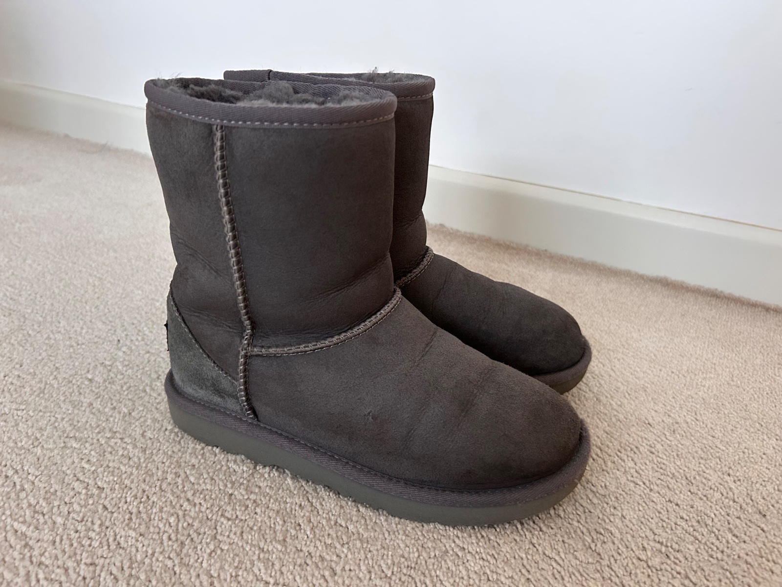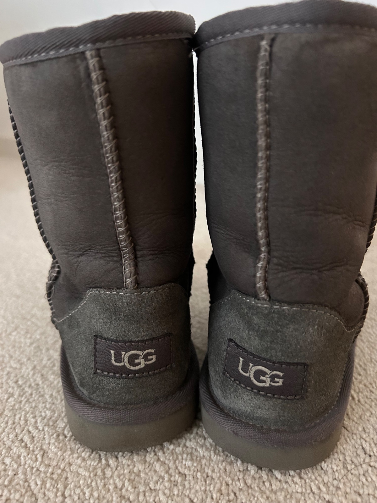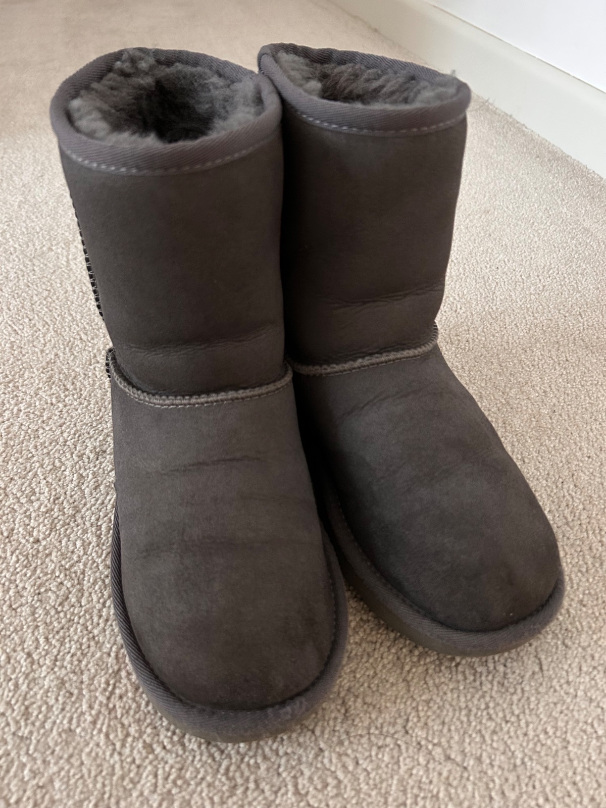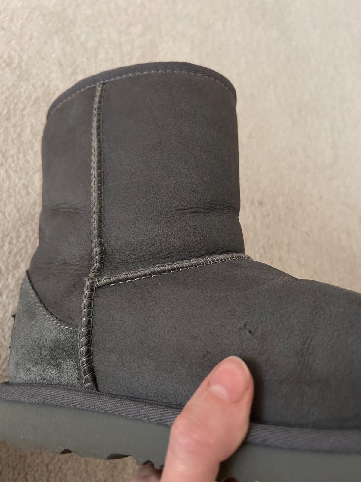 Predam teple cizmy zn UGG (original). Z ovcej kozusiny. Velkost 35, aj 36 nositelne. Na kusku ma chybne sitie a zader (posledne foto), inak dobry stav. Nosene jednu zimu aj so snehulami.
