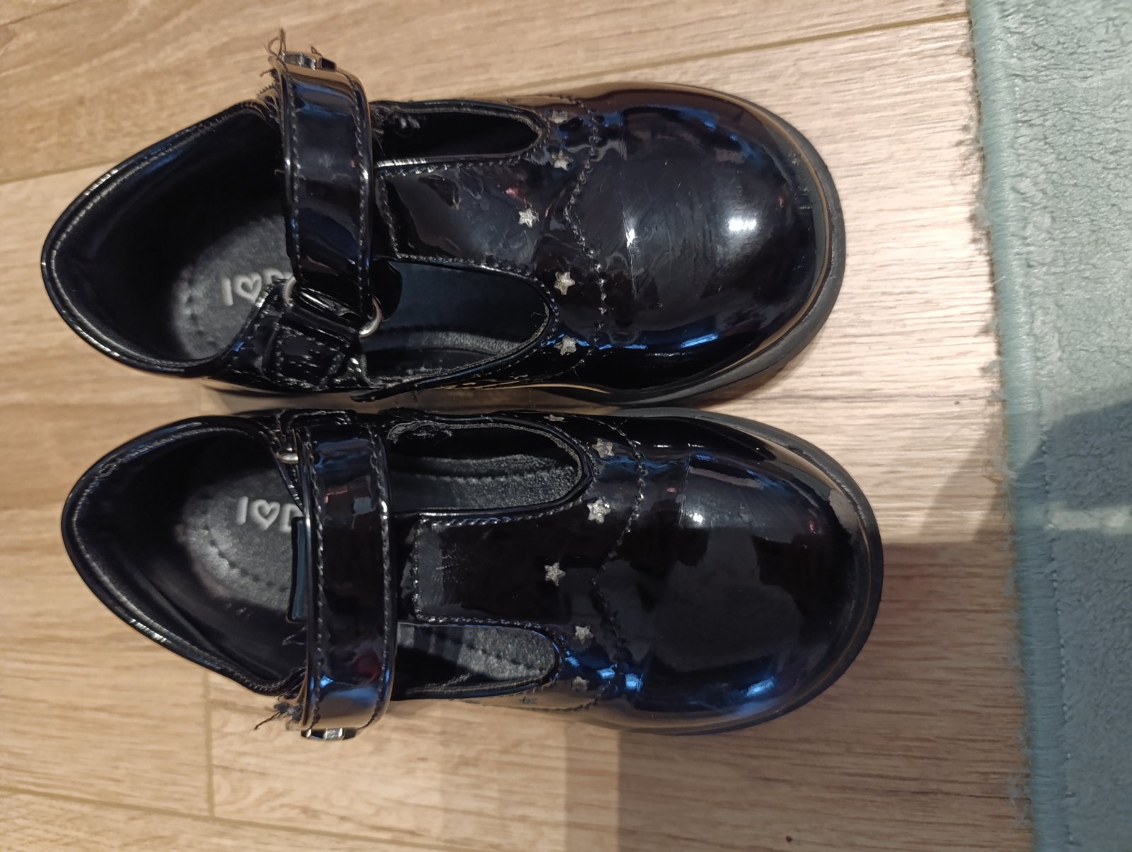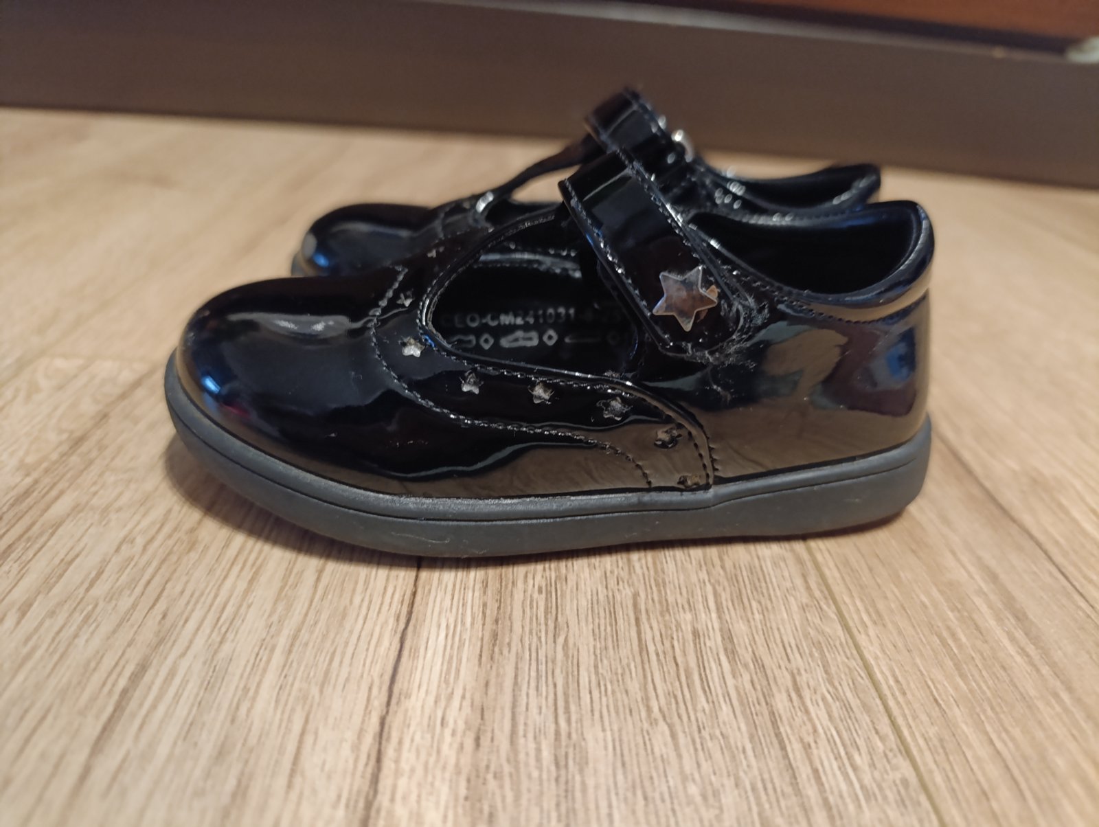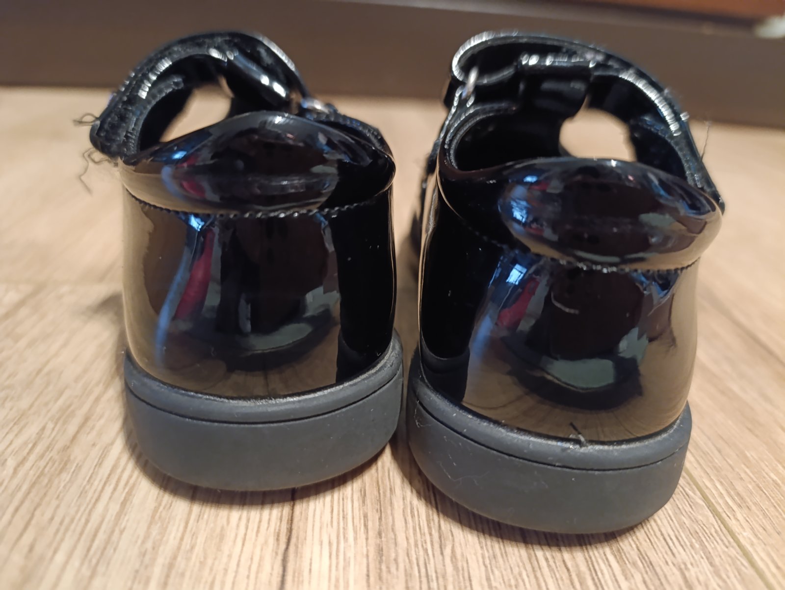 Cierne lakovky vel.25,nosene par krat a uz sme nevyuzili nozicka narastla,vpredu dva drobne skrabanceky co vidno aj na foto kazdej topanocky....ale inak stav dobry...preto posuvame