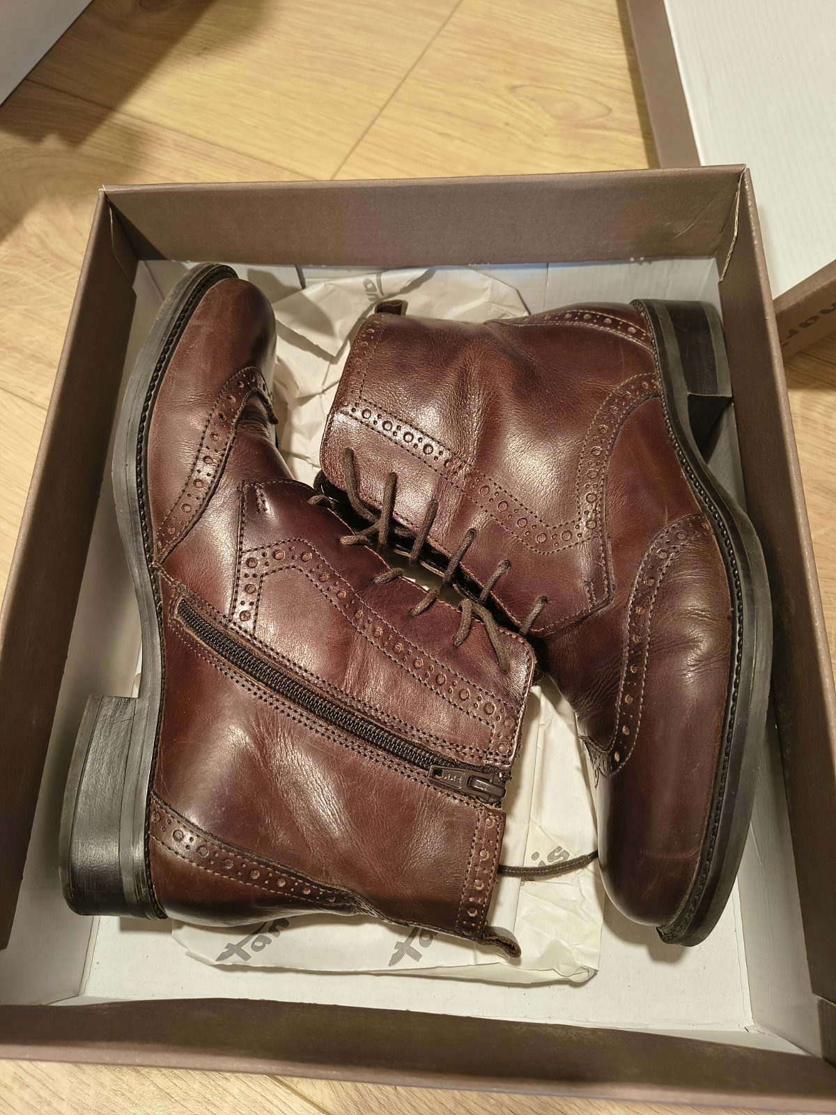 Nosené, vo výbornom stave, iba vo vnútri jazyka na ľavej topánke sa supe, ( vid foto) nevidno pri nosení