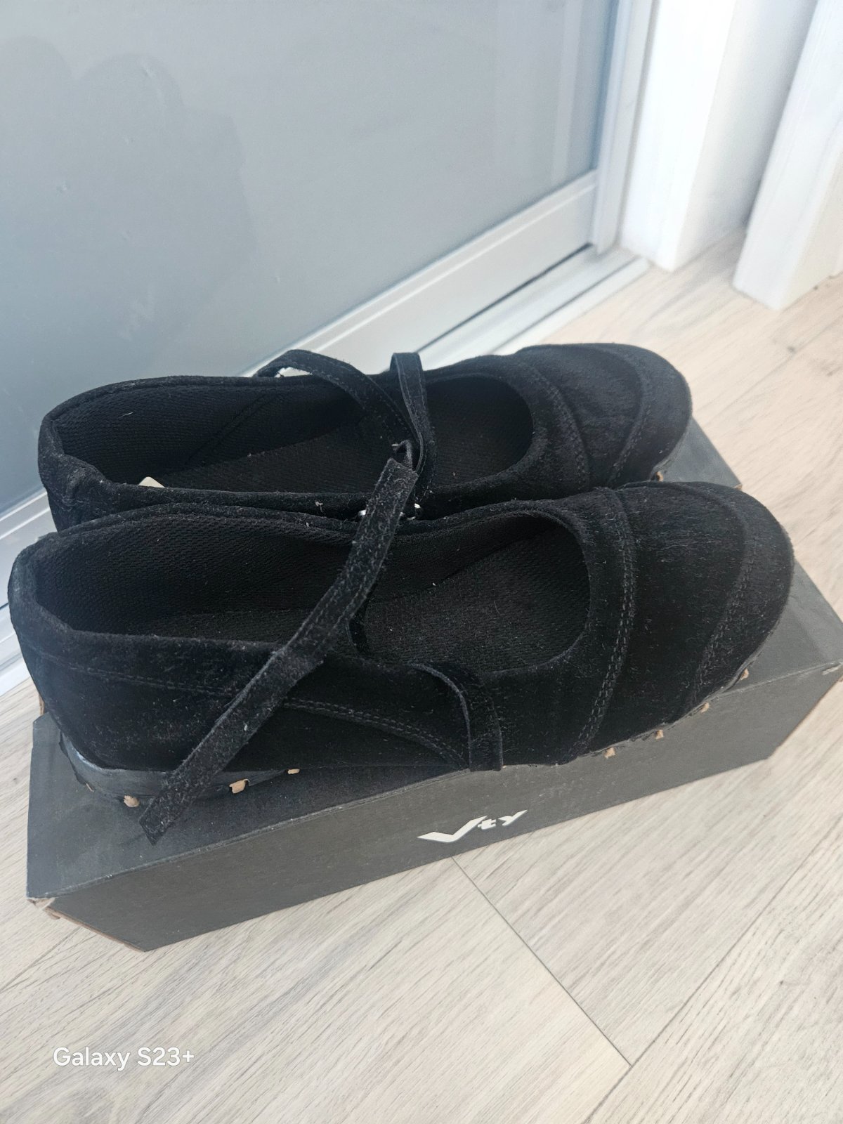 Predám semišové baleríny na suchý zips....používané len na praxi....kupované v bonprixe