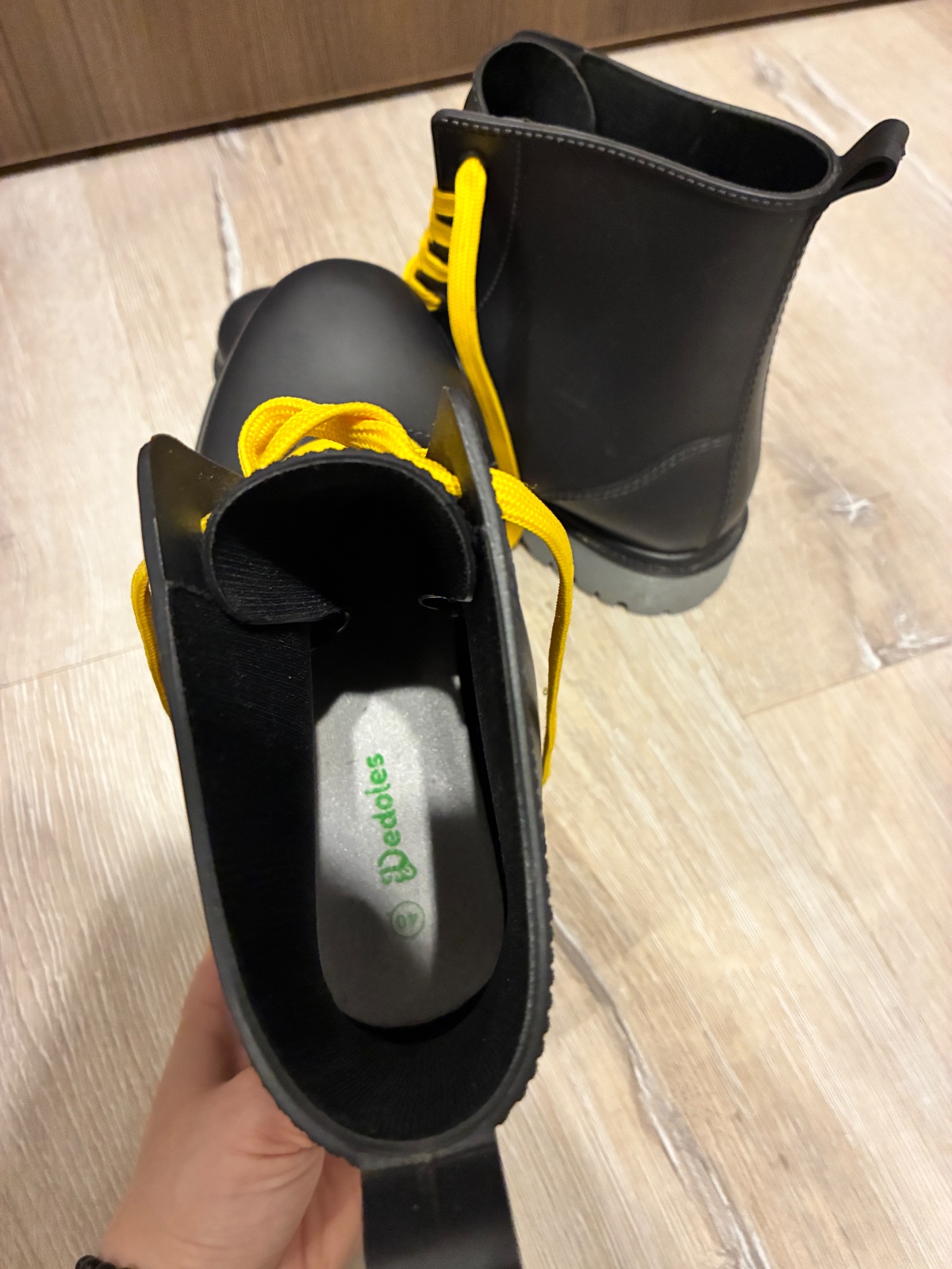Predám originál štýlové gumáky čierno-sivej farby od značky Dedoles. Gumáky sú bez veľkého poškodenia a čisté. Veľkosť 40. Vnútorná dĺžka vložky 25cm a v lýtku sú širšie. Vhodné do daždivého počasia, na prechádzky, na festivaly alebo bežné nosenie v mokrom teréne. Boli obuté len raz na festivale a odvtedy som ich nevyužila ani nevyužijem preto ich rada posuniem ďalej.