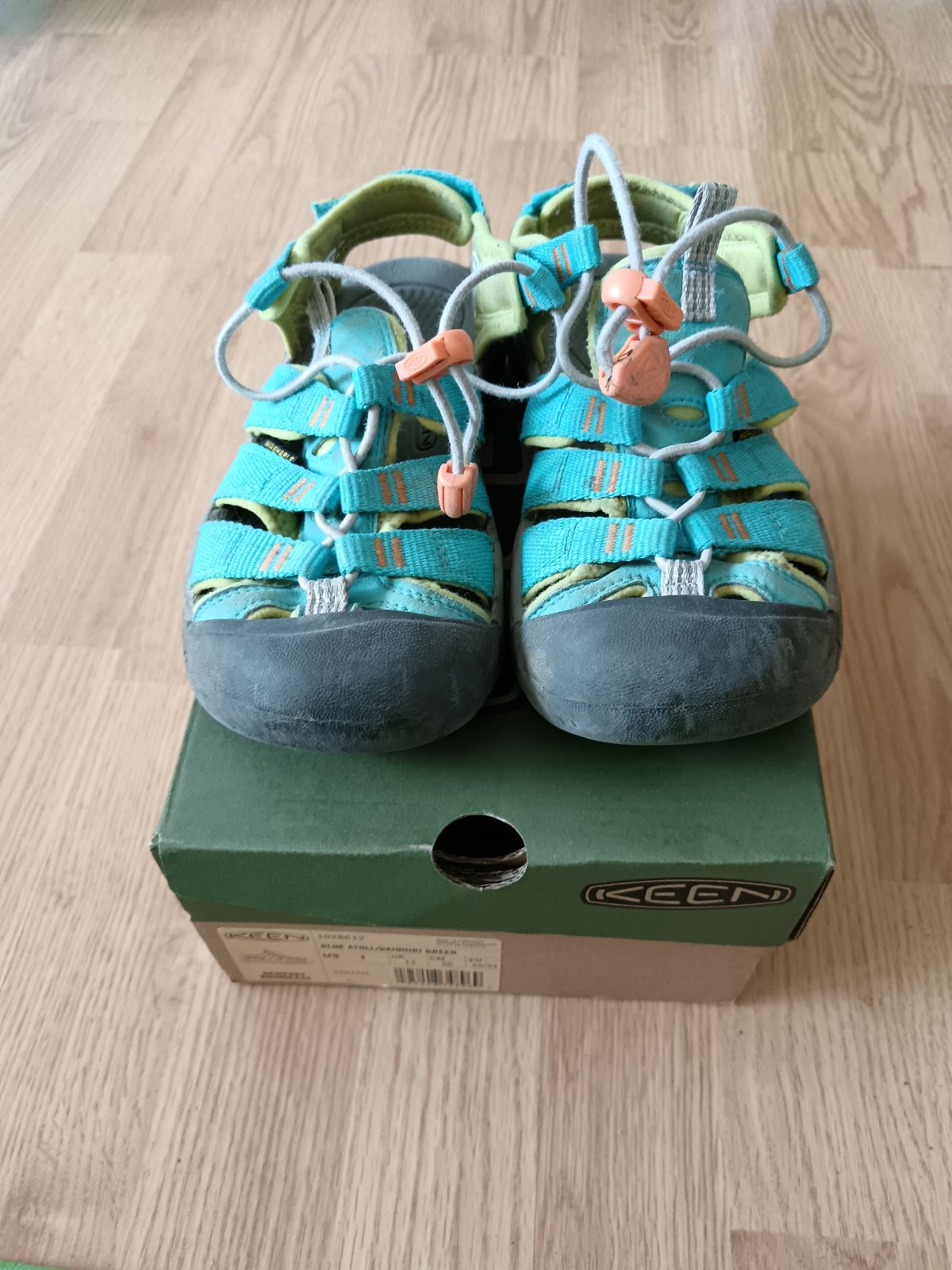 Predám detské sandále Keen CNX (alternatíva barefoot) tyrkysovomodrej farby. Veľkosť 32/33, vnútorná dĺžka 20,4 cm. Dobrý nosený stav so známkami používania. Pravá topánka má maličkú dierku vpredu ...