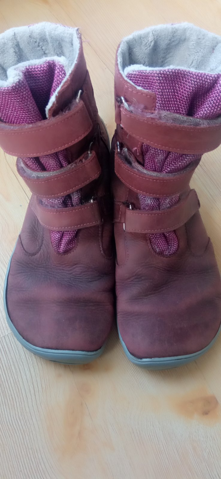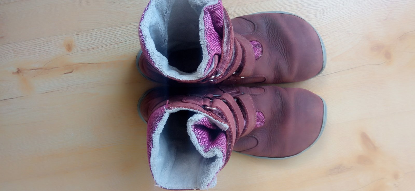 Barefoot zimné topánky na donosenie. Vady odfotené. Suché zipsy držia, topánky nám nepretiekli, vady sú zatiaľ skôr estetické, alebo možný budúci problém. Vnútorná dĺžka cca 24,5cm