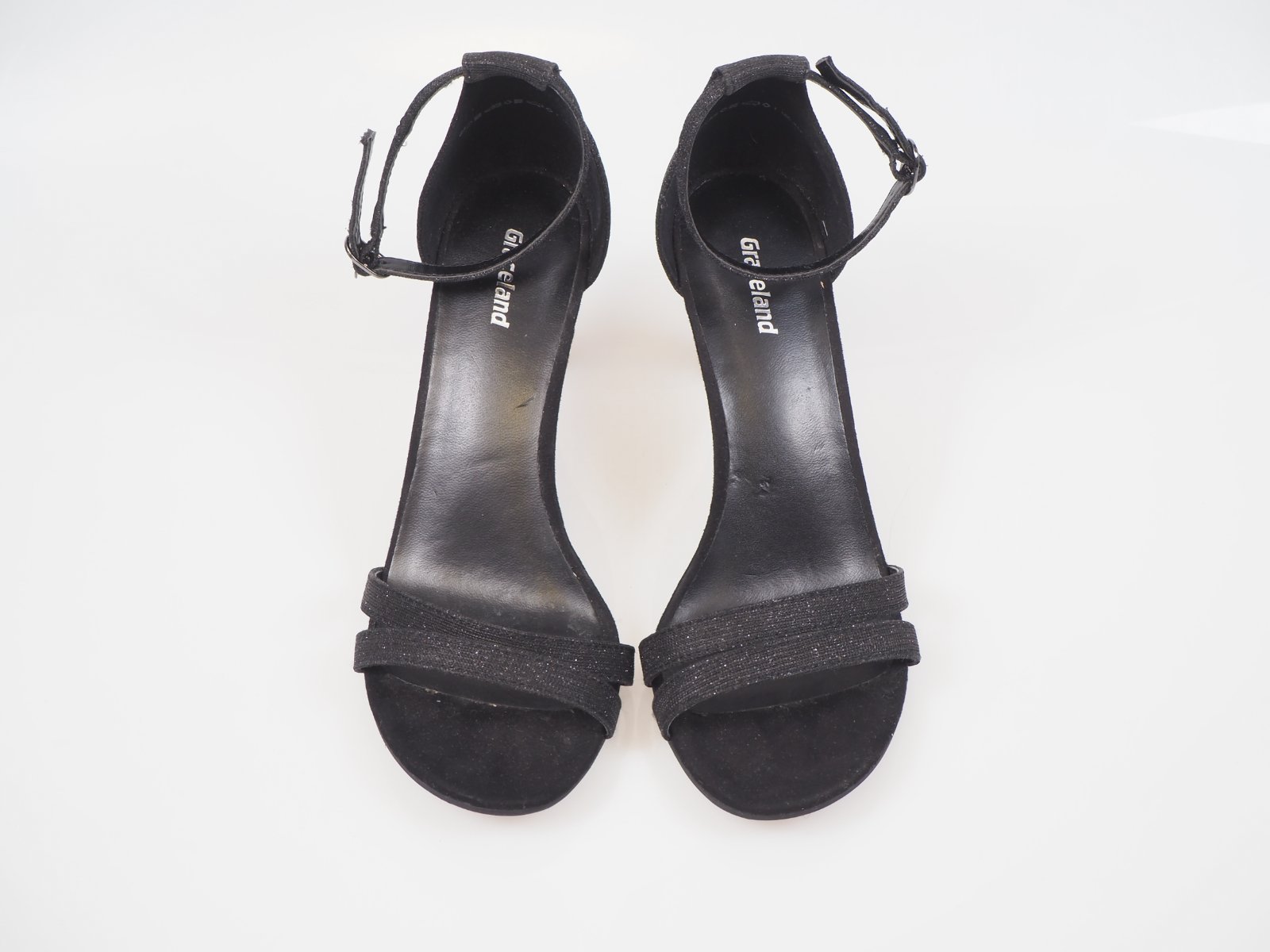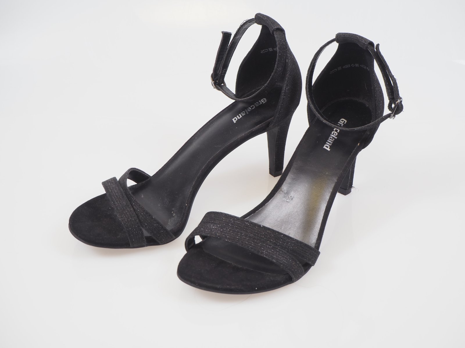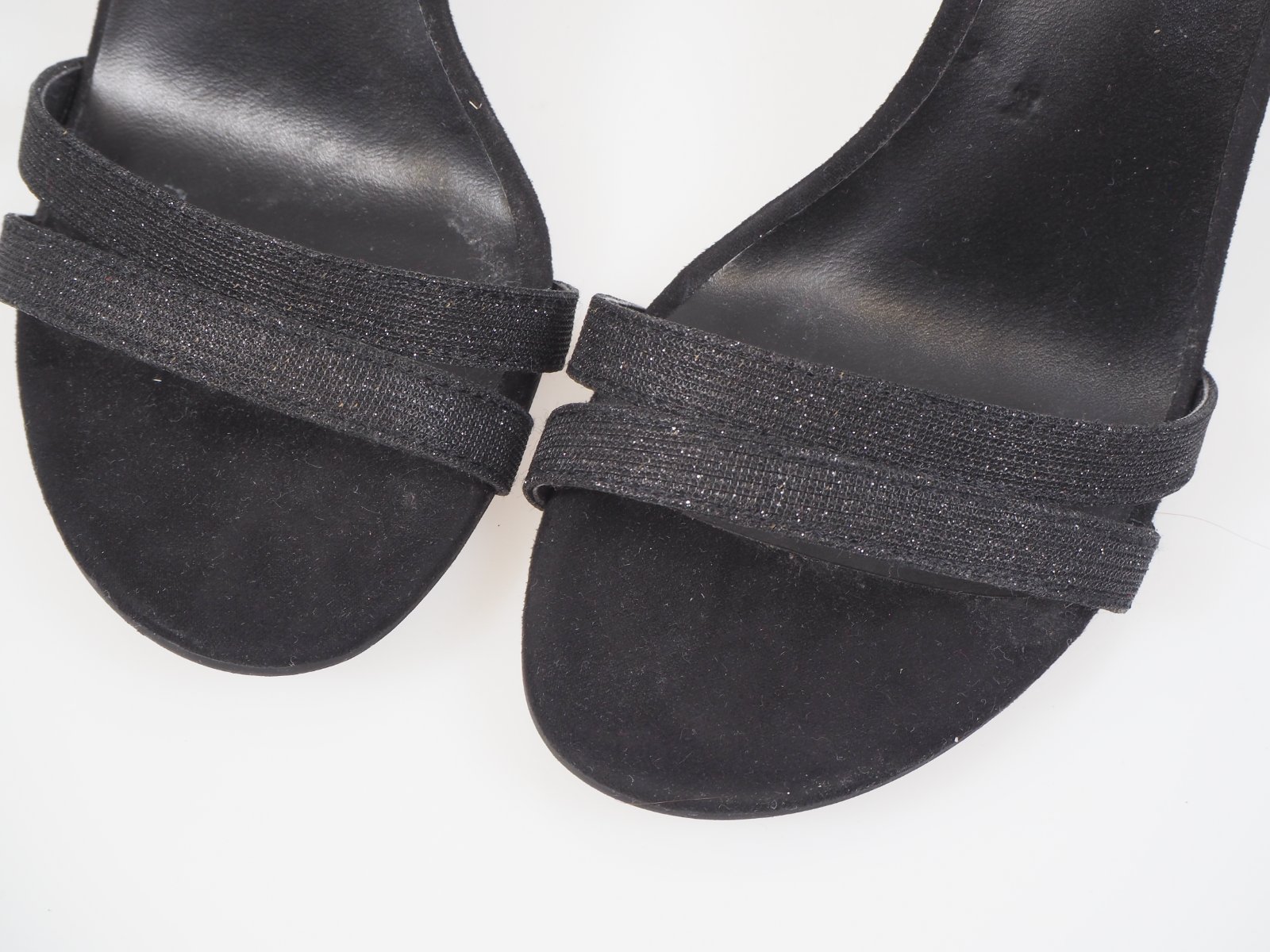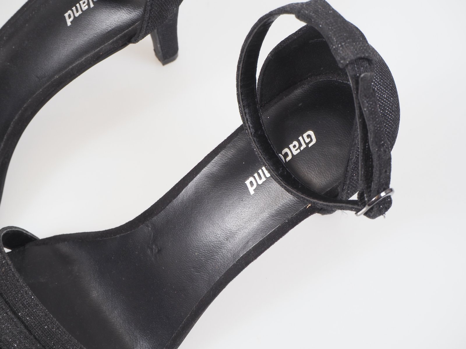 Kvalitné čierne sandále na opätku, uväzovanie na remienok, super stav....vnútorná dĺžka 23,5 cm