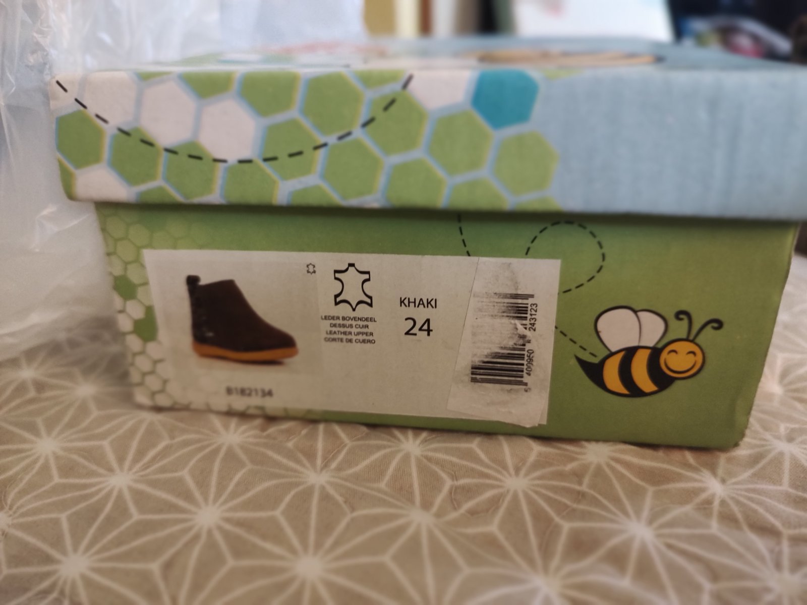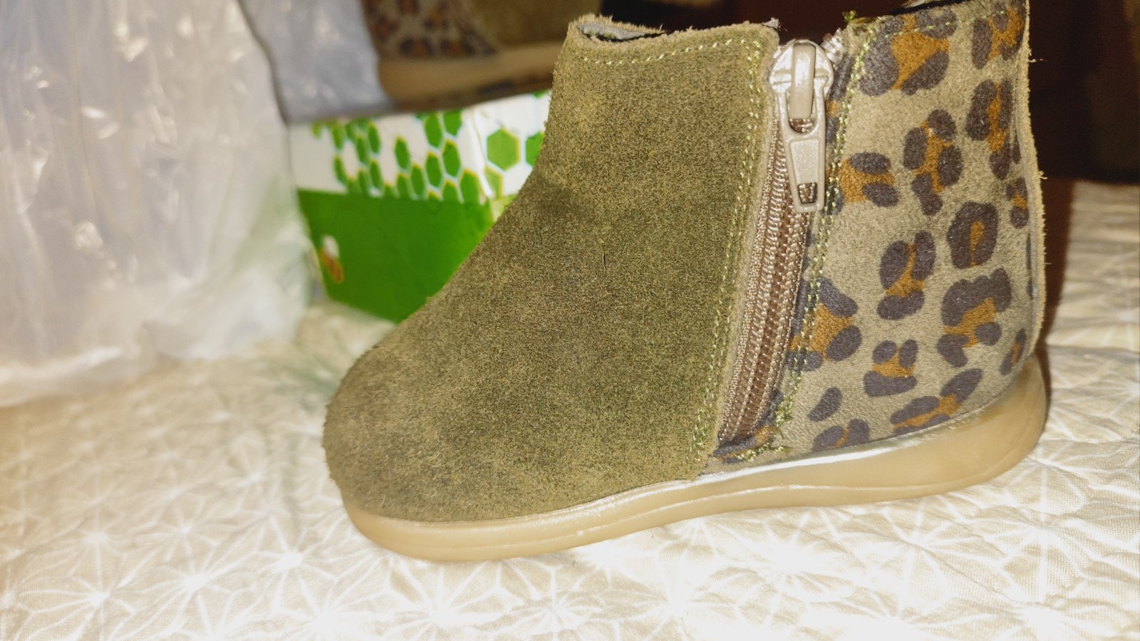 Topánky majú fľaky a na jednom kúsku sa šúpe farba. Ale na dvor sú super, sú stále pevné, nezoslapane, ortopedická stielka, veľmi vhodné na prvé kroky. VD 15 cm
