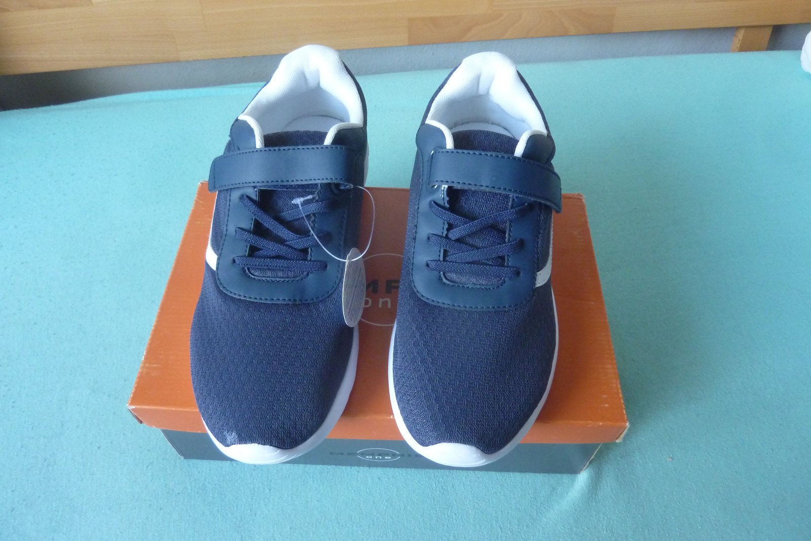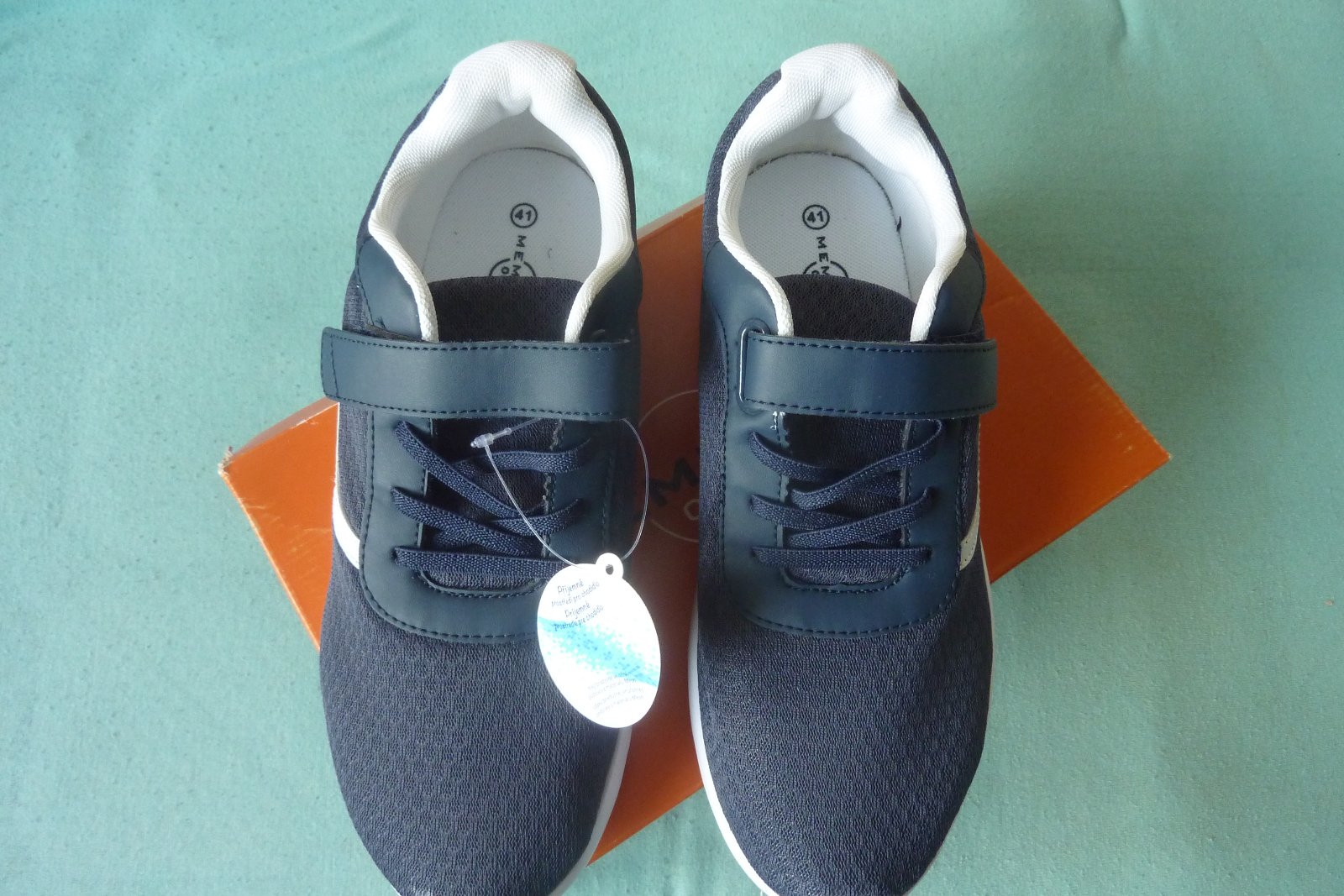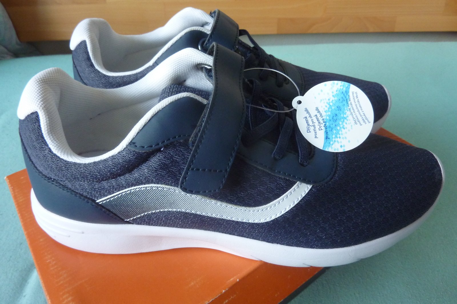 Pekné tmavomodré tenisky, majú 1 suchý zips a elastickú šnúrku. Ľahké obúvanie.