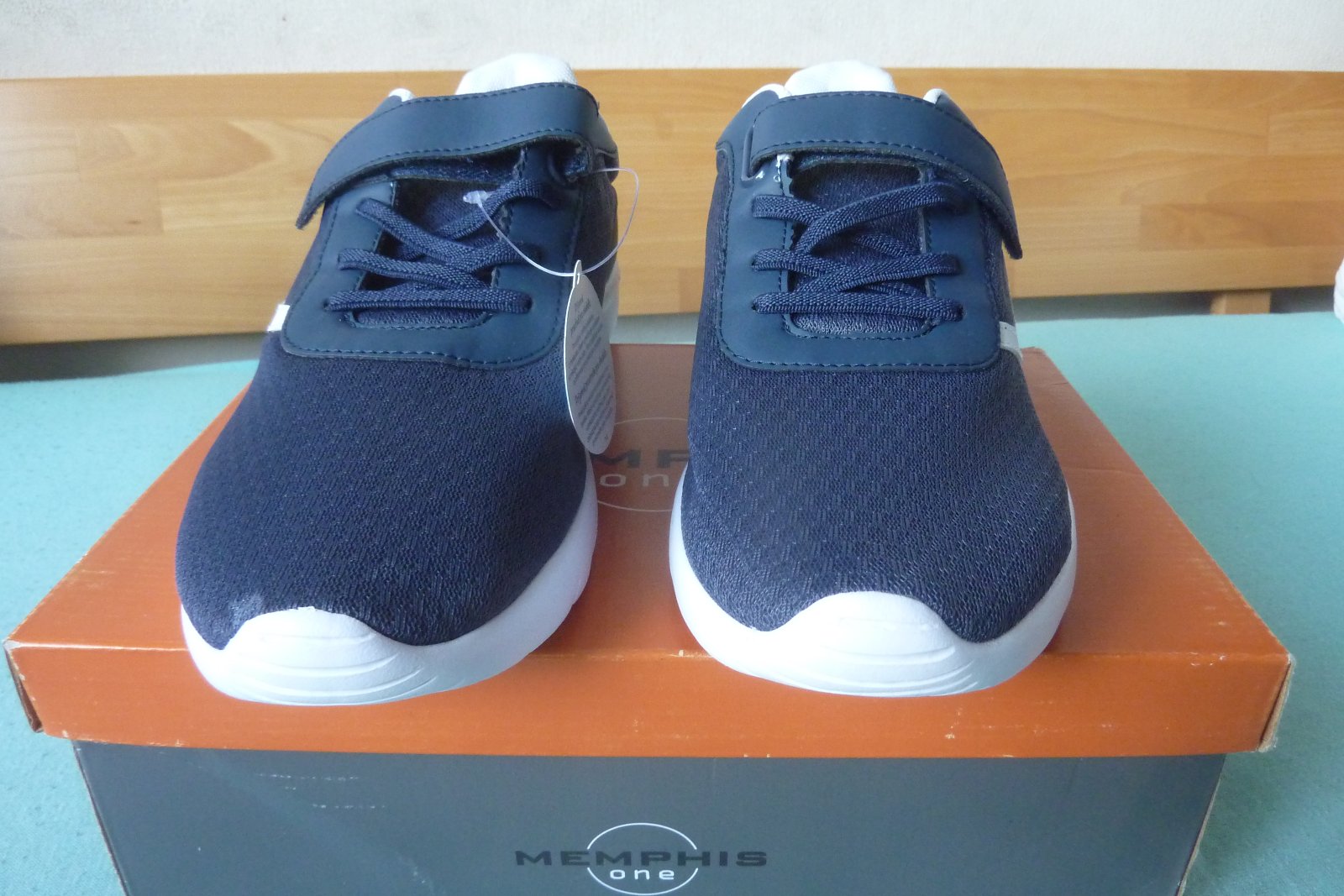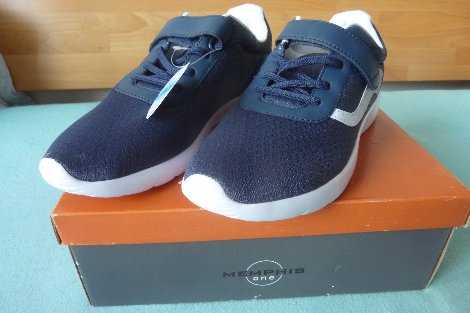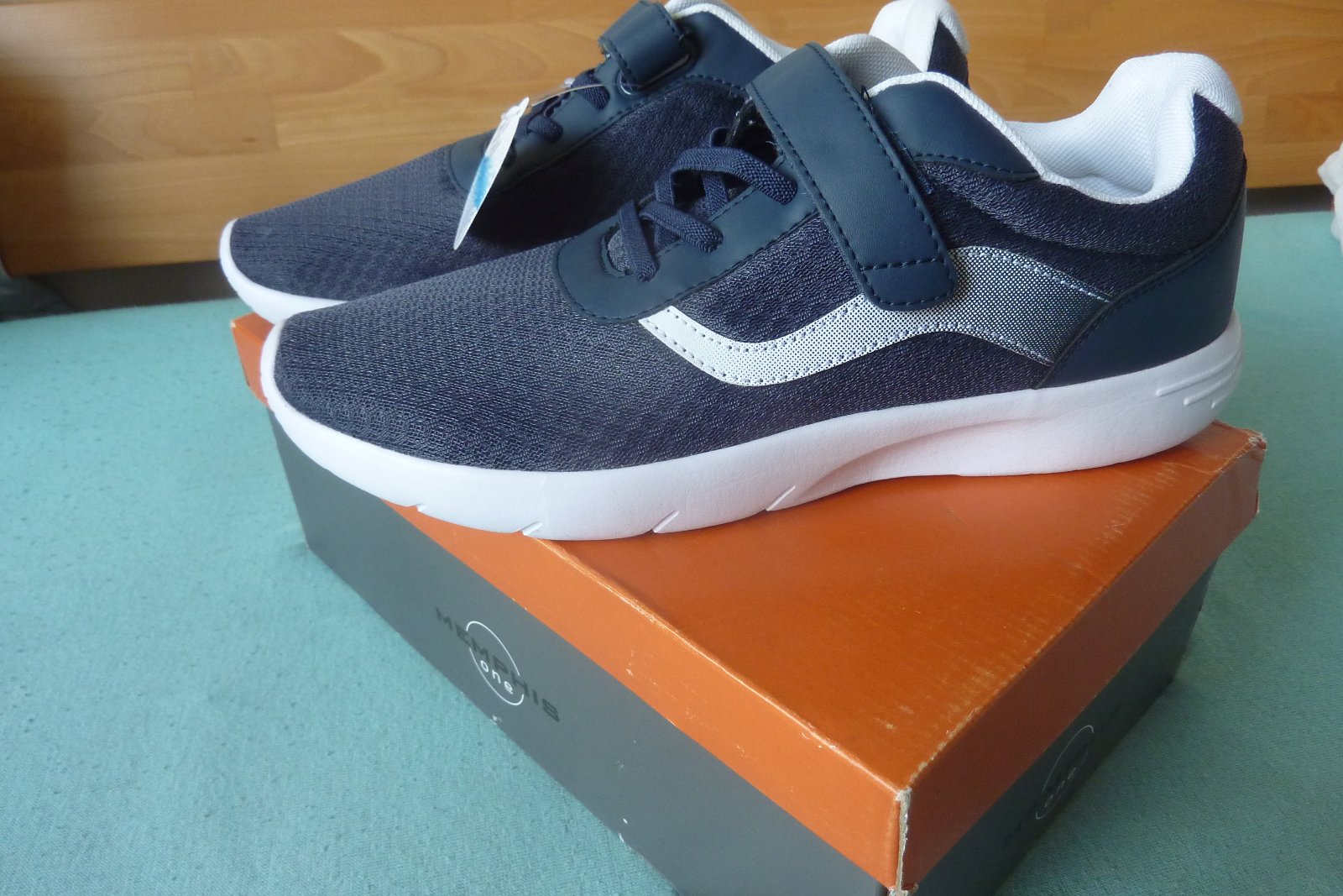 Pekné tmavomodré tenisky, majú 1 suchý zips a elastickú šnúrku. Ľahké obúvanie.