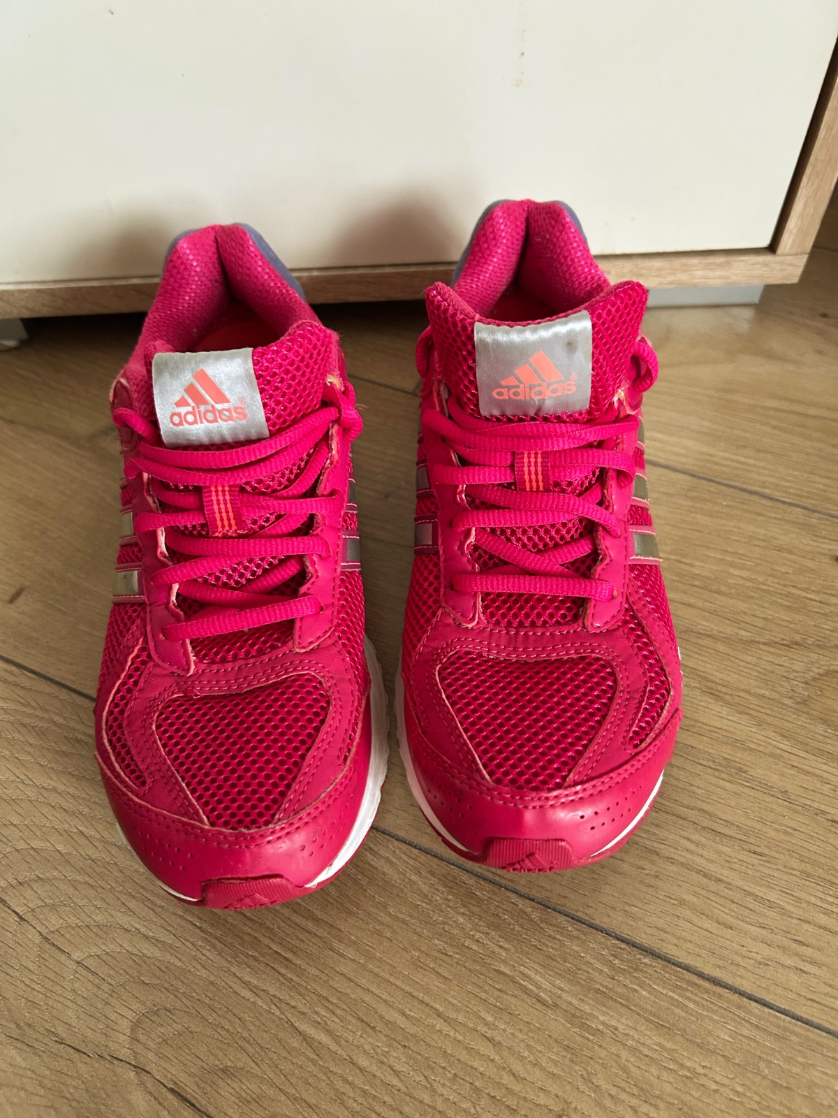 pôvodná cena 70€ veľkosť - 37,5 značka - Adidas vnútorná dĺžka -23,5cm párkrát obuté stav vid na fotkách, no žiadnu chybu som si nevšimla krásne ružové 11966 banánová krabica