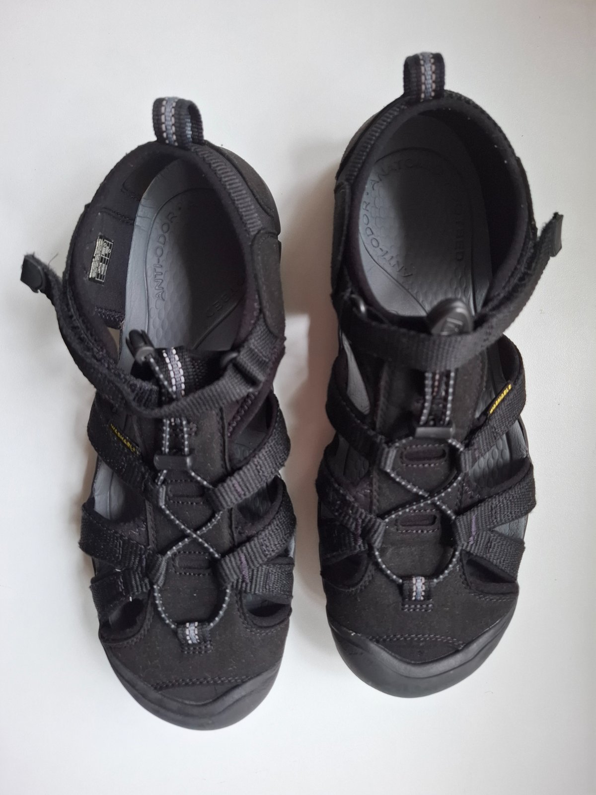 Sandále vo výbornom stave. Na špičke je mini dierka, ale len na vrchnej sieťke. Nijako to nebráni užívaniu. Sú oprané a dezinfikované ozónom.