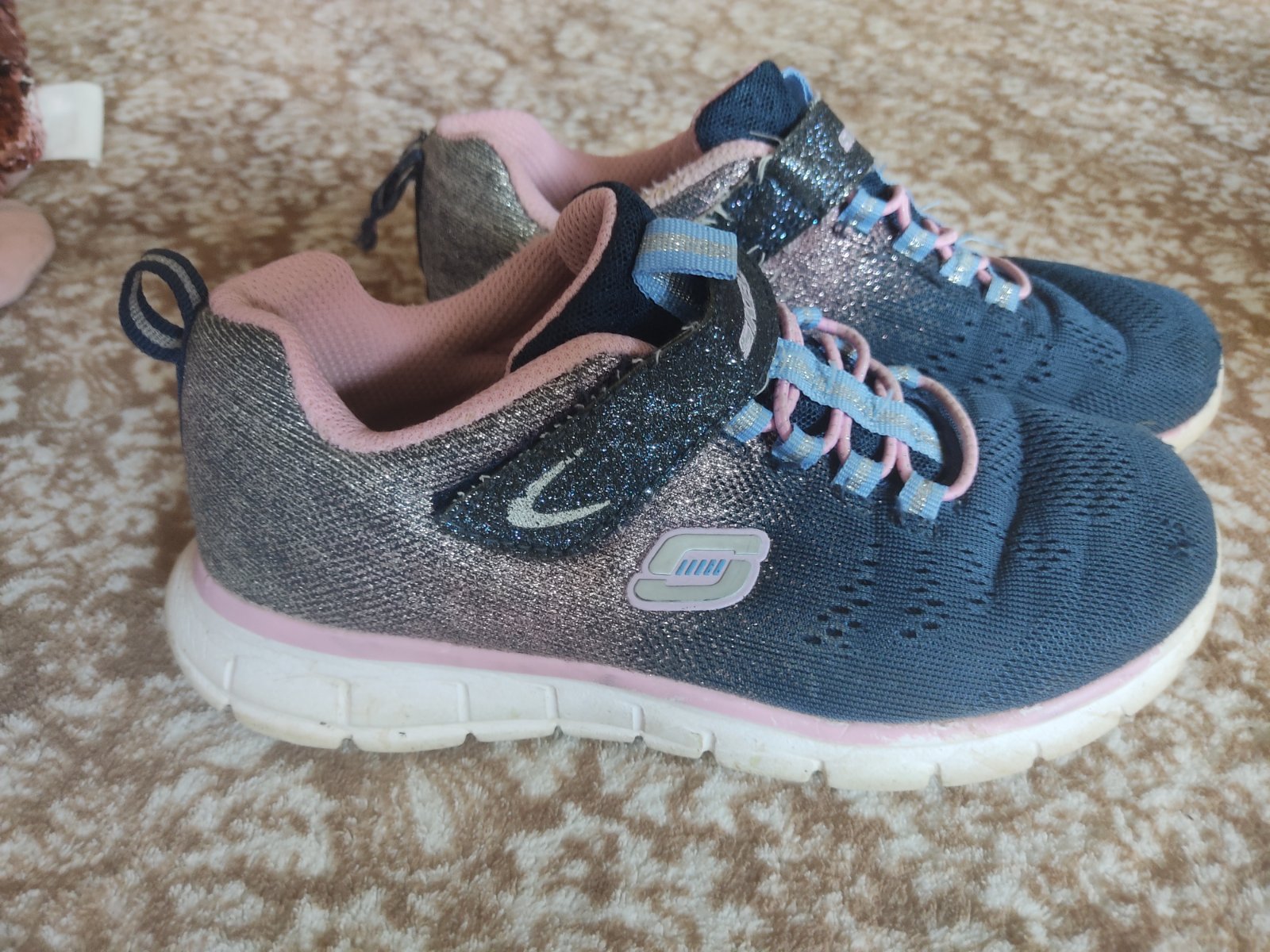 Predám tenisky zn.Skechers, s vložkou Protetika, veľ.34, (21,5cm), mäkké, ľahké, nosené na telesnú l, trochu obdraté (pozri foto), za 3e.