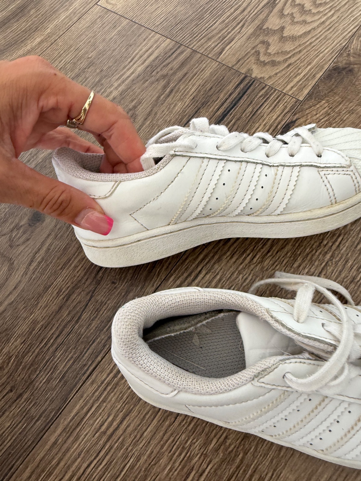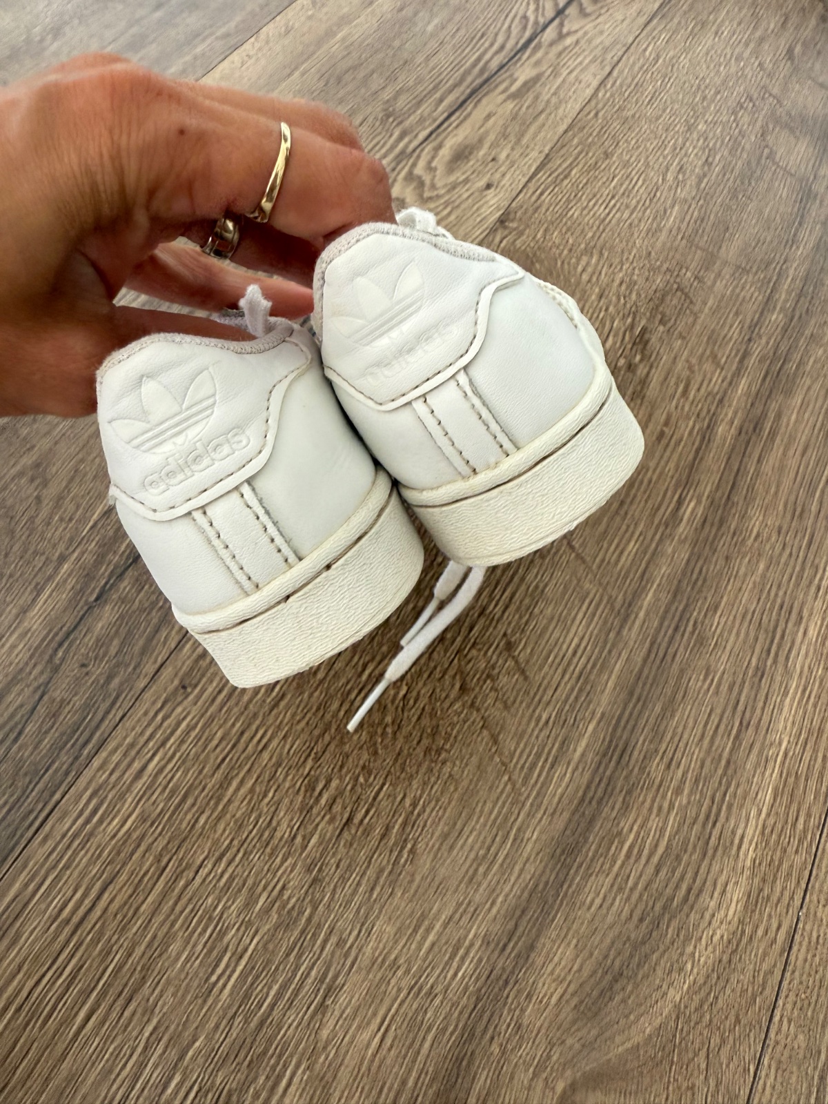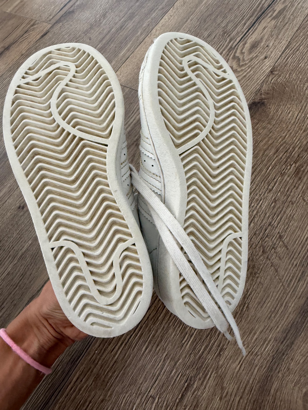 Predám kožené tenisky značky Adidas NOVÉ, dcéra ich nestihla nosiť, veľkosť 30. Pôvodná cena: 29,90€, teraz 22€.