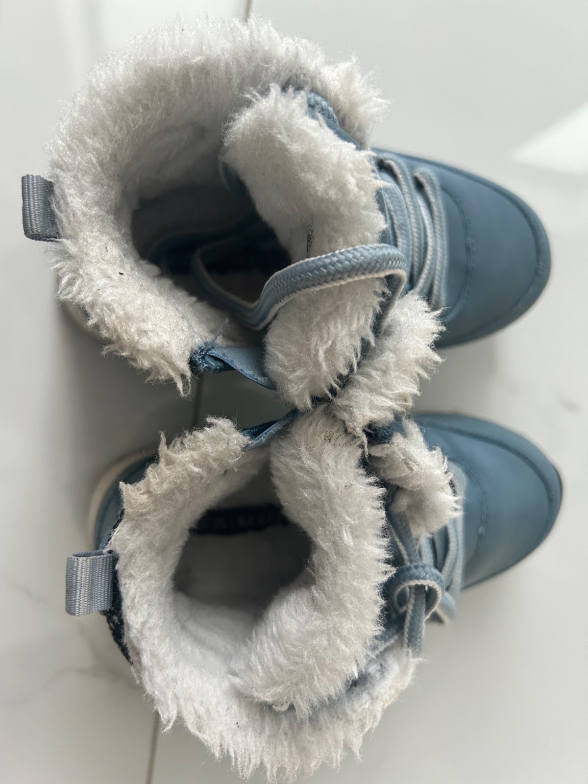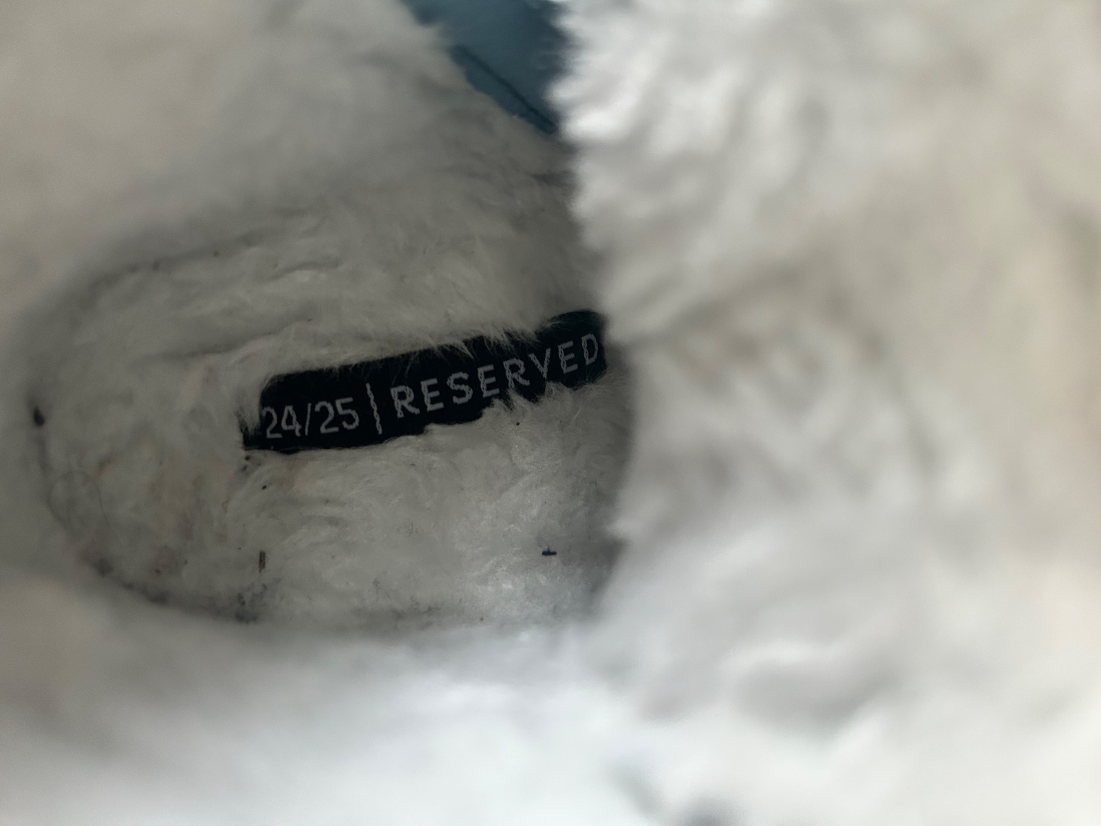 Čižmy Reserved Snehule z viacerých materiálov. Okrúhla špička Vysoký zvršok zapínanie na zips z vnútornej strany Vlnená vložka a podšívka Hrubá podrážka z termoplastickej gumy Veľkosť 22/23, 24/25...