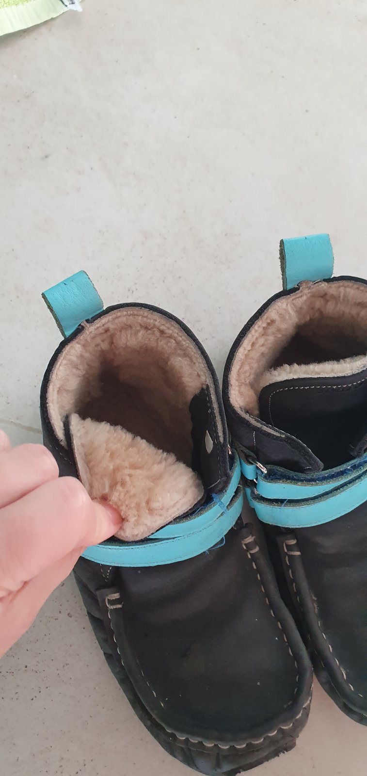 Mäkké ako papučky, lahko sa obuvaju, zateplene ovcou vlnou, nikdy nám nepremokli, malý ich mal najradšej, bo naozaj sú veľmi pohodlné, VD 19,5, trochu suchnuté špičky, ale na funkcii to nič nemení, su plne funkčné, len estetická vada