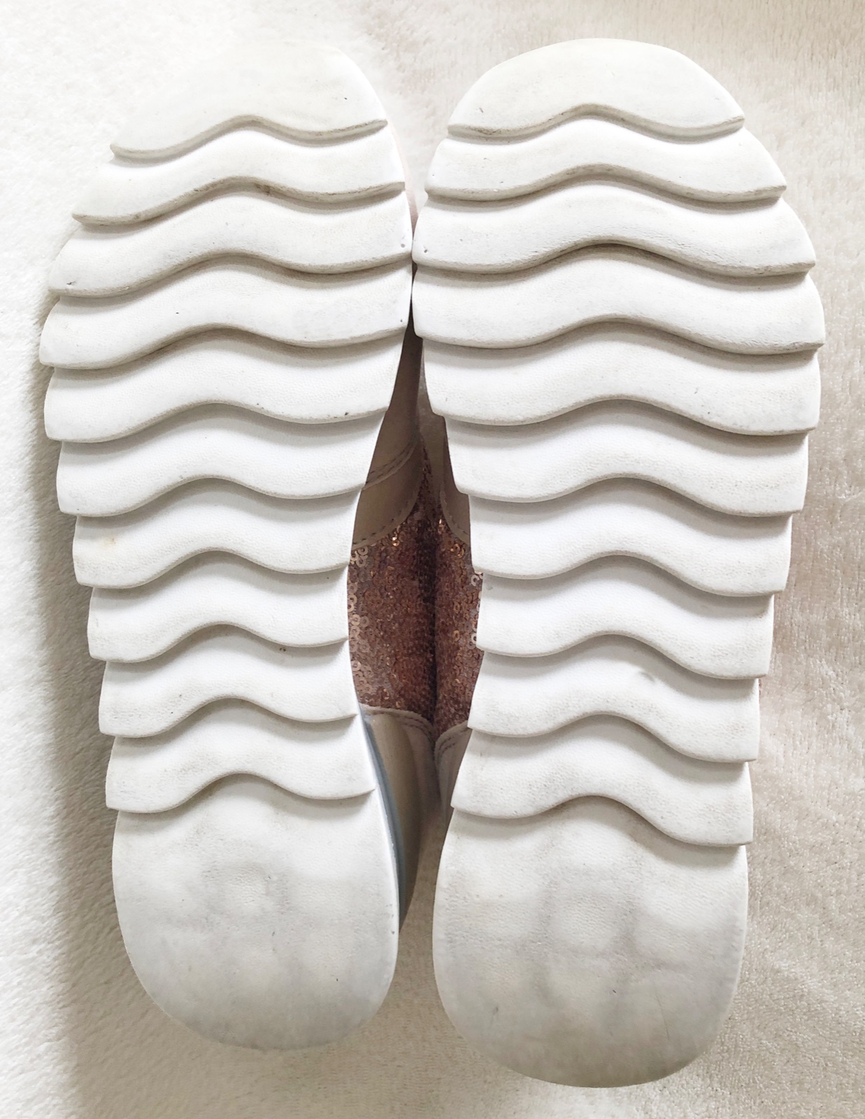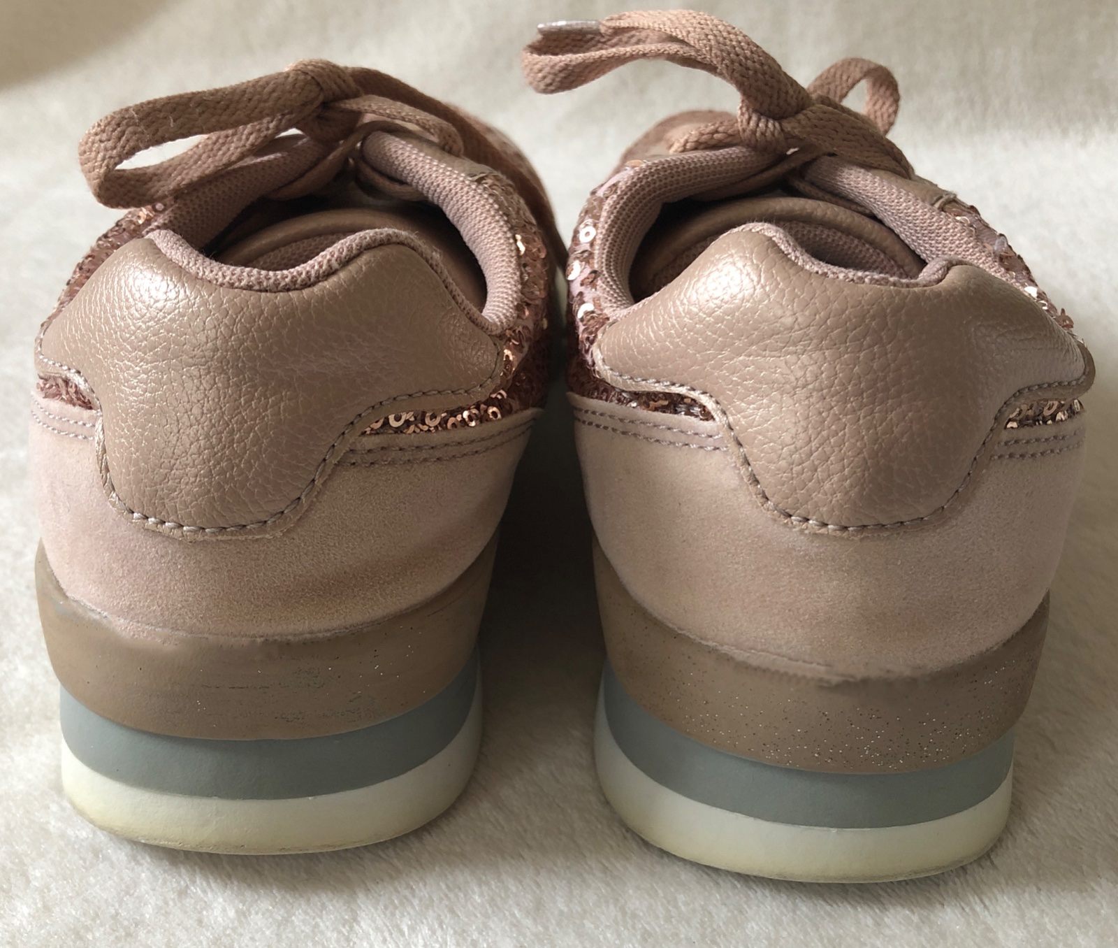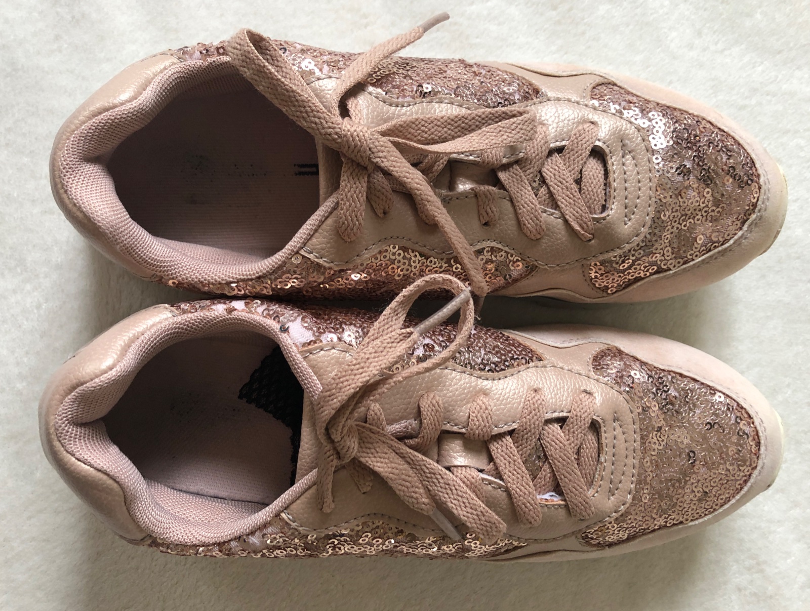 Nosené tenisky, vo veľmi pekne stave. Kombinácia kože, semišu a lesklých flitrov v ružovej pudrovej farbe - sú veľmi ženské a pôsobia luxusne.