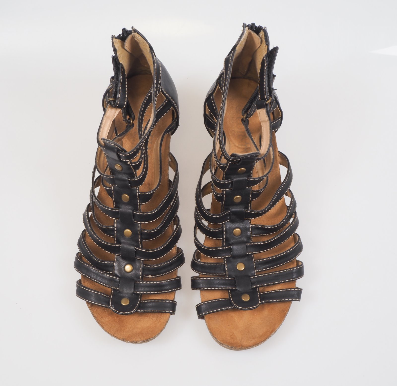 Kvalitné dámske sandále, zapínanie vzadu na zips, korková podrážka na opätku, super stav, ako nové....vnútorná dĺžka 27 cm