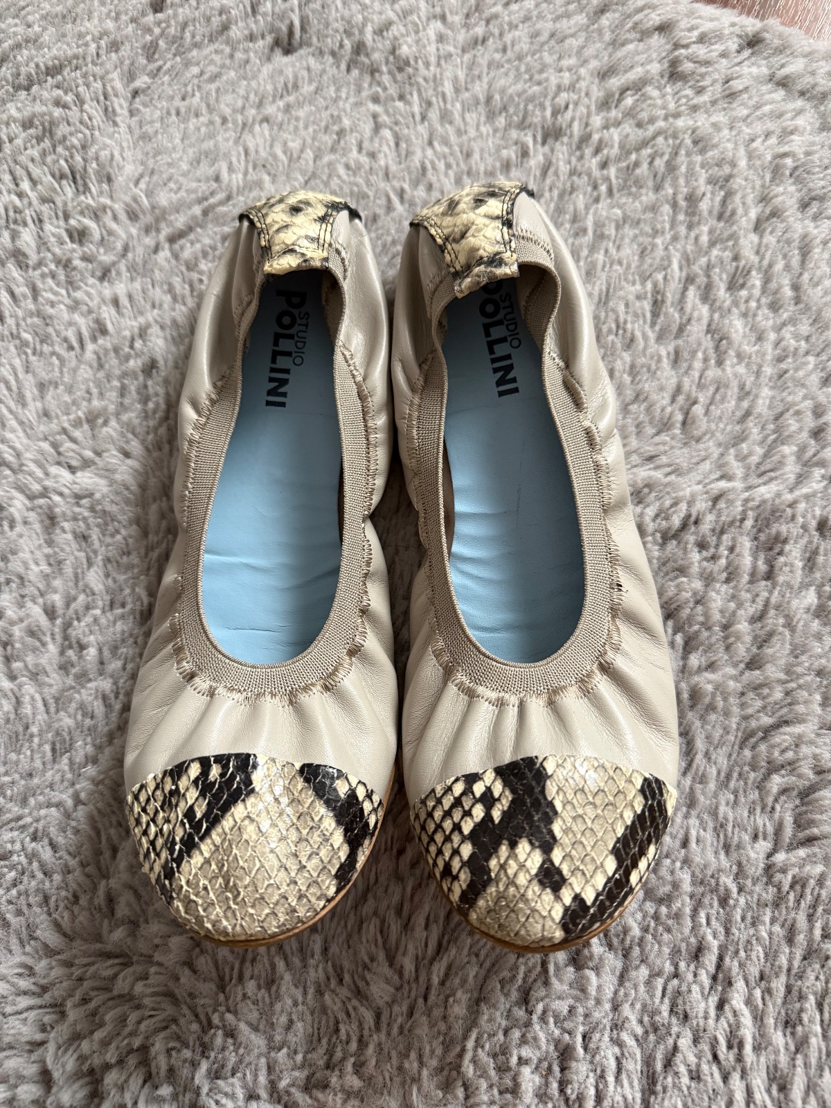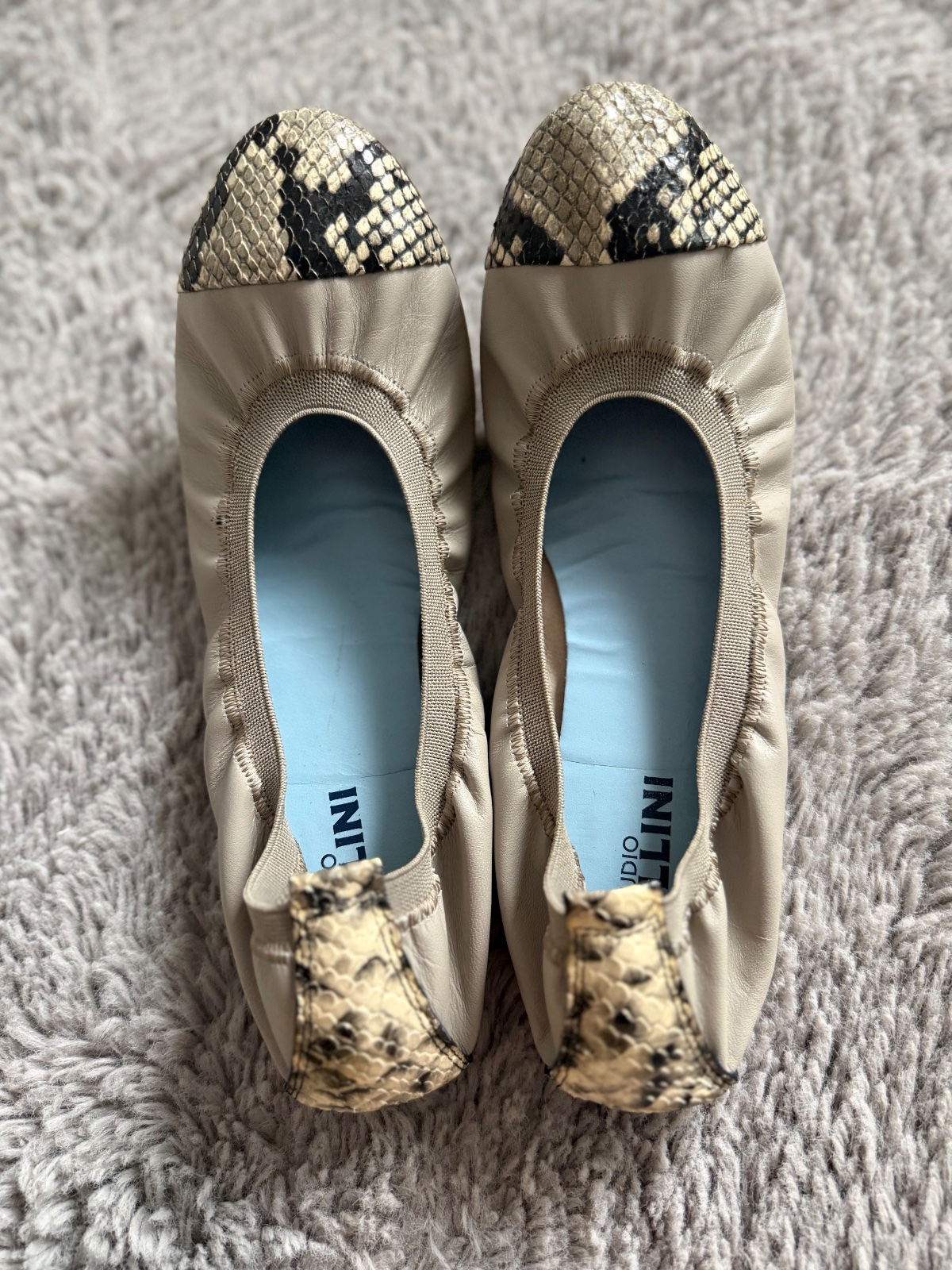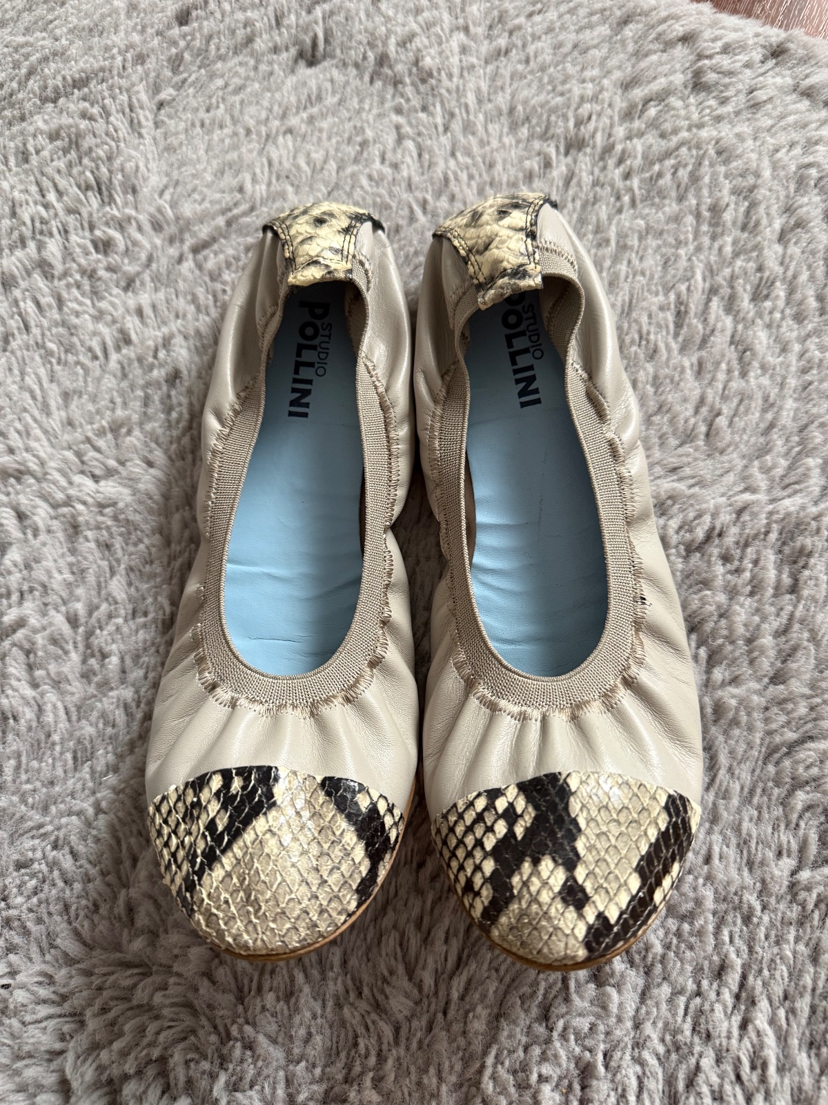 balerinky zn. Lazzarini, kupene v Humanic predajni, kremova farba, obute raz ( neodhadnuta velkost ) dost pohodlne, neotlacaju, vnut. dlzka chodidla je 24 cm.
