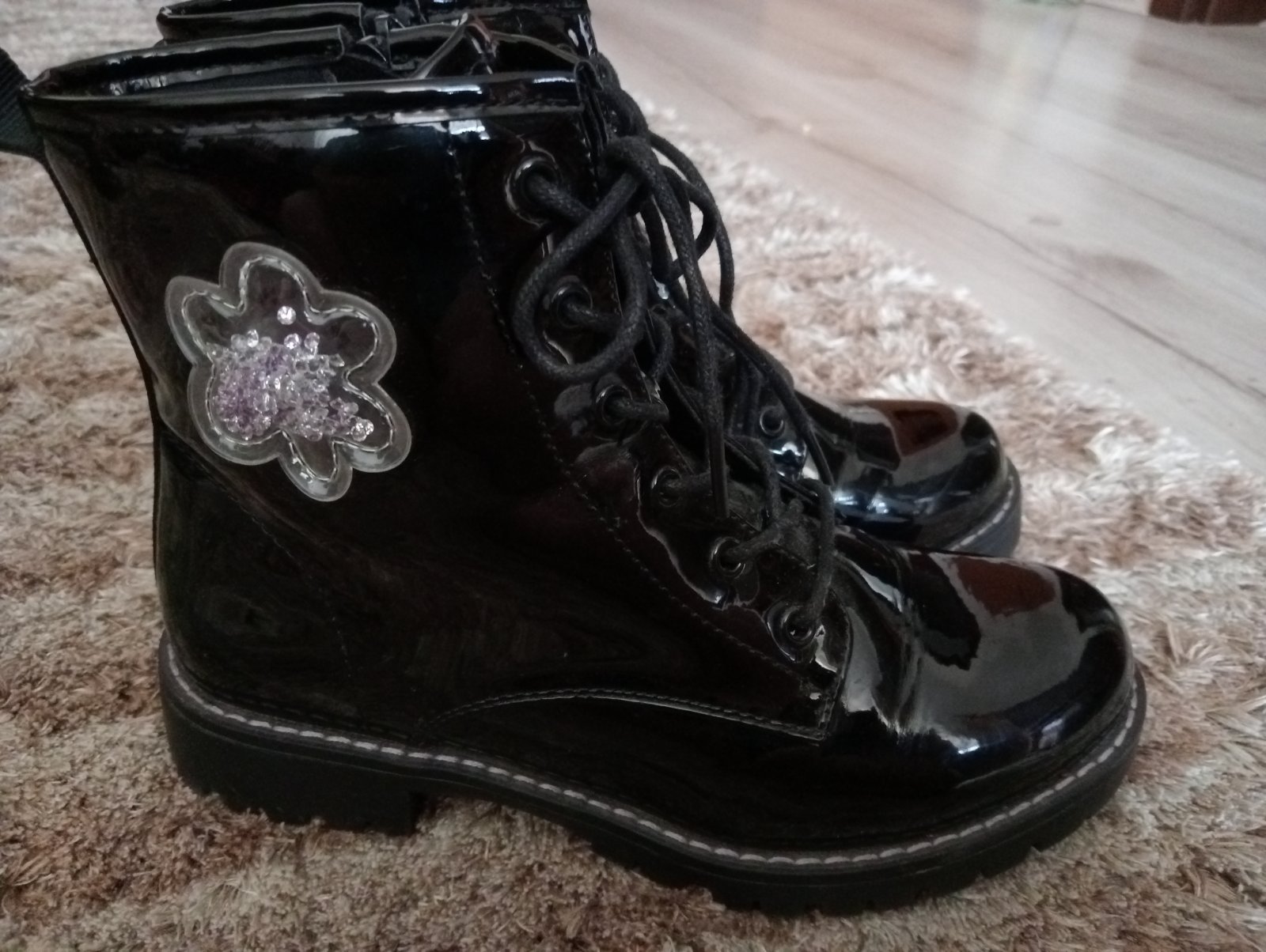 Čierne lakované topánky značky Reserved, kupovali sme ich na začiatku roka, pre dcérku, mala ich pár krát. Vpredu napravo sú trochu suchnute,nafotila som, ale nie je to vidno. V prípade záujmu k ni...