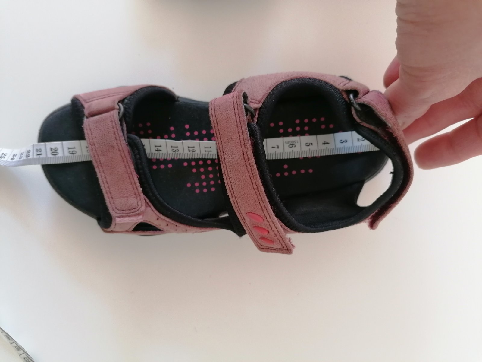 Sandálky v super stave. Sú ľahučké, anatomická stielka. Ľahko sa prispôsobia na nohu, lebo sú tam suché zipsy. Celková dĺžka 20,cm.
